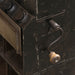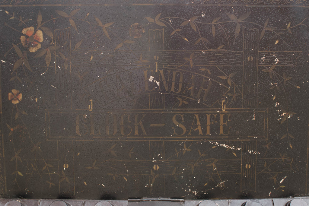 Cowboy chuckwagon kitchen calendar clock, coffee grinder, 6 spice tins, 5 compartments on top with shelves below. Purchased from a Colorado ranch