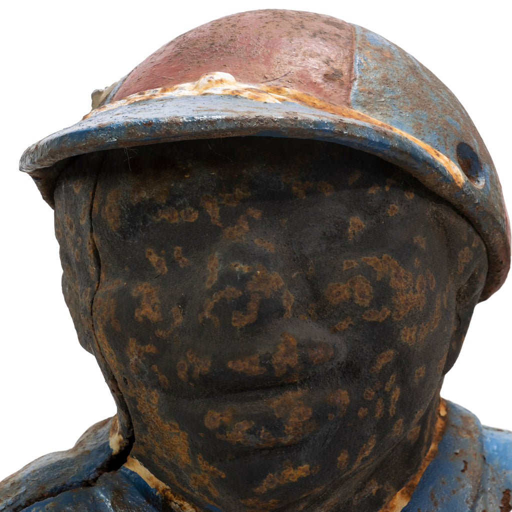 Cast iron jockey hitching post. Cast iron on base. At first glance, the lawn jockey may seem like a symbol of racism during a period where slavery pervaded the United States. However, little do many know, these lawn decorations were essential to escaping slaves. The statue would help guide them to the Underground Railroad, which ultimately led to freedom.