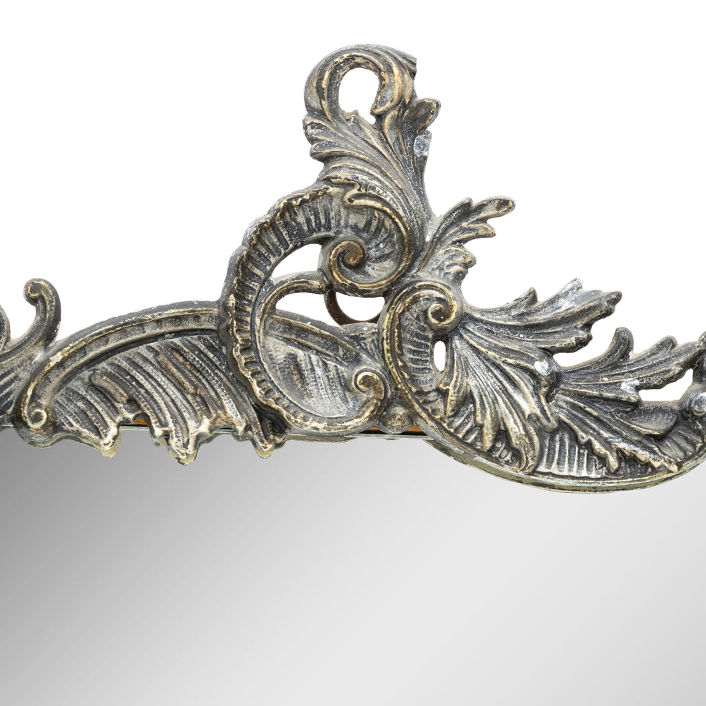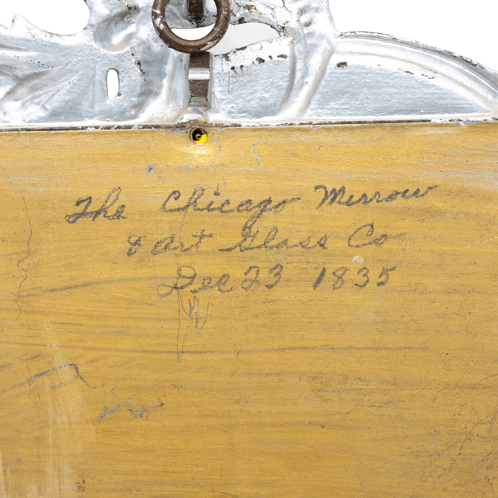 Chicago art glass mirror with ornate cast foliate frame. Marked on back "The Chicago Mirror Art Glass Co. December 23, 1835." 13"W x 17"H