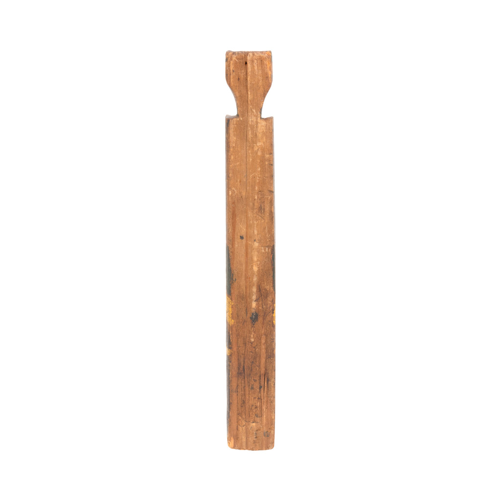 Coast Salish or Nuu-chah-nulth three-figure totem pole. An earlier Coast Salish or Nuu-chah-nulth model pole that depicts a perched bird, perhaps a Raven, over what appears to be a Frog and Bird or possible Canine on the bottom. The simplified sculptural forms on this pole point to a Coast Salish origin, but also make interpretation of the figures difficult. The figures are painted in original old yellow, green, red, and black pigments and the surface of the wood has taken on a wonderful patina. 12 1/2"H
