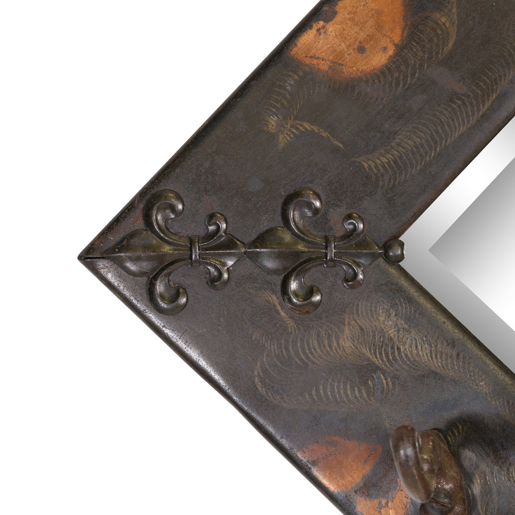 Copper flash beveled mirror with coat and hat rack from a "gentlemen's house."
