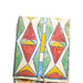 Crow painted parfleche envelope on bison rawhide. Decorated in bilateral, symmetric form with central columns of stacked diamonds divided by a blue, yellow and cream band, and framed with a green repeated triangle outside border. Retaining a tag for "Sotheby's New York." 28 1/4" x 13" x 2"