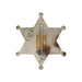 Early 1900 vintage 6 point ball tip star badge. Nickel plated, 2 1/2" across tip to tip, vertical safety style pin. "Stock" badge was a preferred style of the western sheriff departments.