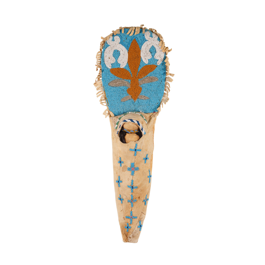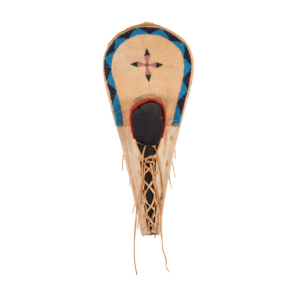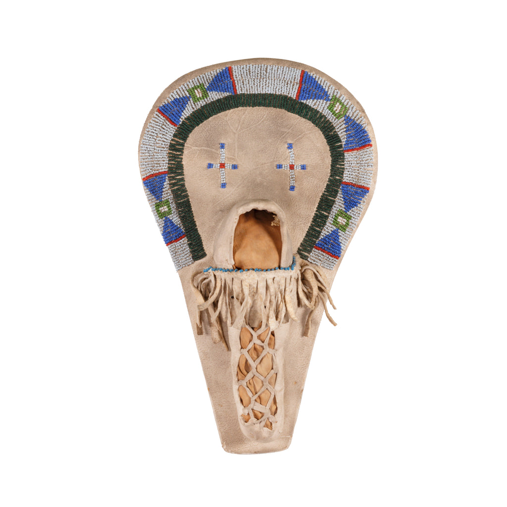 Doll Cradleboard Collection (Right to Left) 1. Ute cradleboard. 13”. Beaded edge with cross accents and brain tanned deer hide. 2. Umatilla doll cradleboard. Fully beaded panel. Cross accents with fringe. 19”. Brain tanned deer hide with doll having adorned with horse hair. 3. Nez Perce doll cradleboard. Brain tanned deer hide with fully beaded panel. 18” 4. Ute doll cradleboard. Fully beaded edges and brain tanned deer skin. 20” 5. Ute cradleboard. Brain tanned deer skin with cream algae stain. 21” 6. Ute cradleboard. Beaded panel with cross motif and beaded band having time and shape fetish. Brain tanned deer skin. 19” 7. Plateau cradleboard. Canvas with deer hide panel having beaded edging and cross motif. 18”. 8. Ute cradleboard with beaded edging and band. Cross motif and brain tanned deer hide. 16” 9. Ute cradleboard with panel and band having diamond shaped fetish on brain tanned deer hide. 13”.