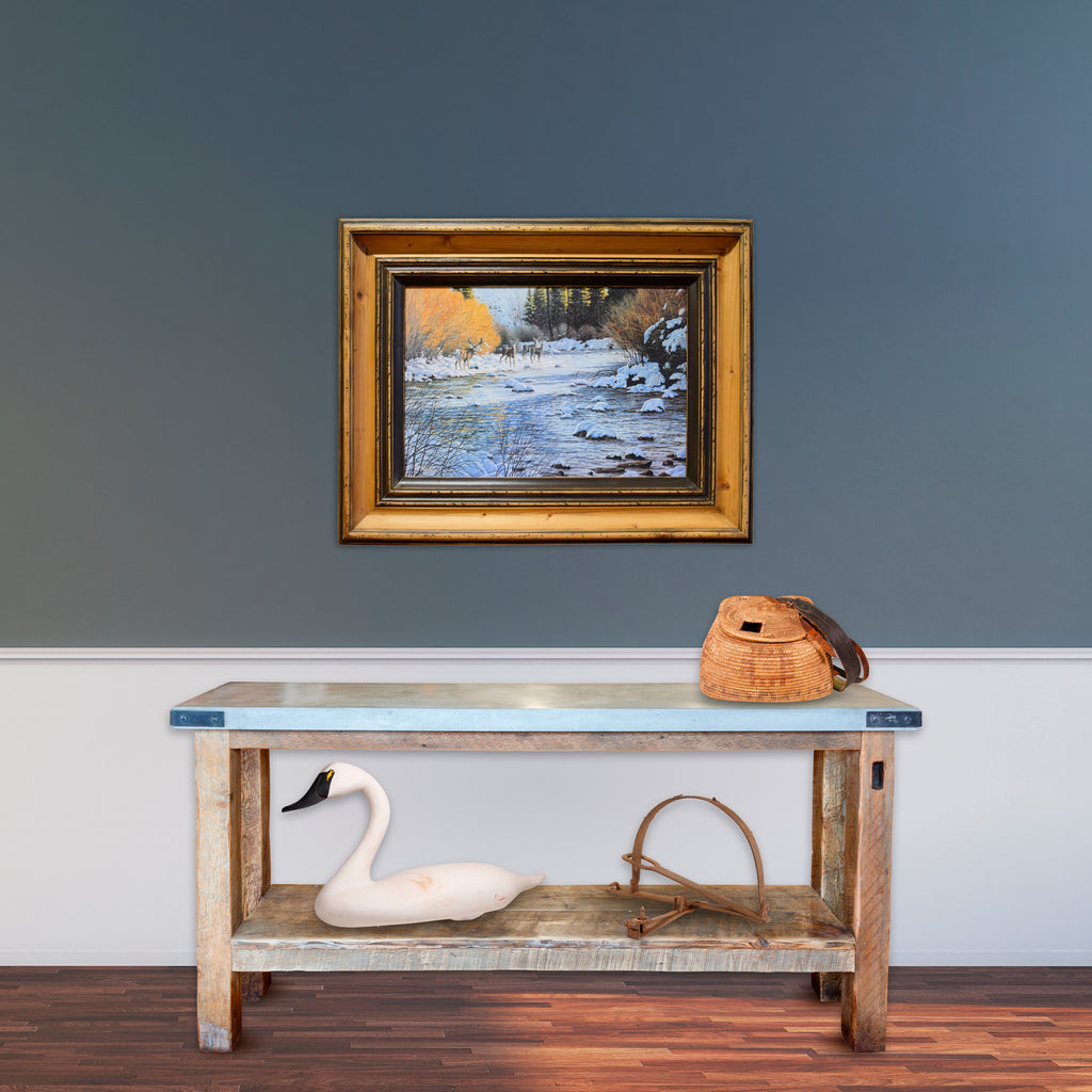 Limited edition giclee edition of 1000. 18" x 27", frame size 37" x 40". Exceptional framing(has brought over $2K at Rocky Mtn Elk Foundation auctions).