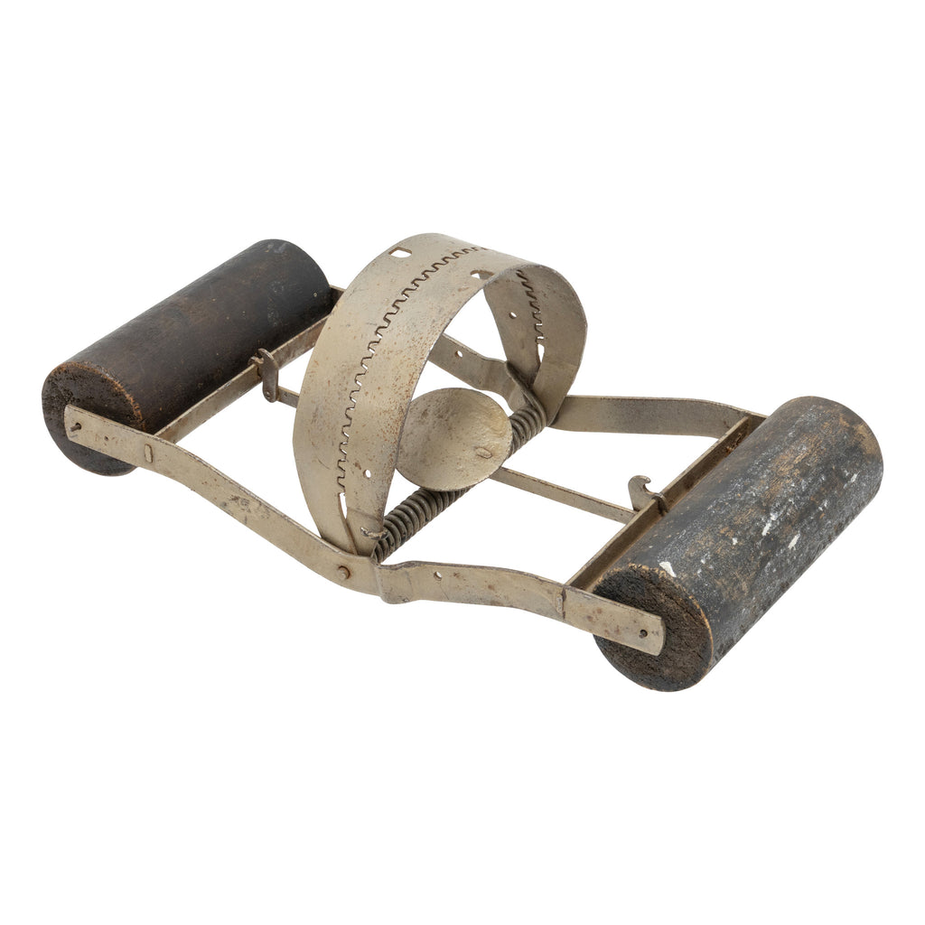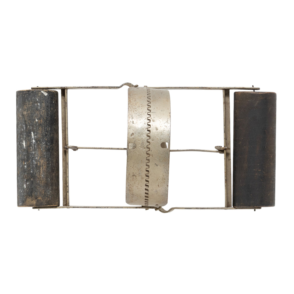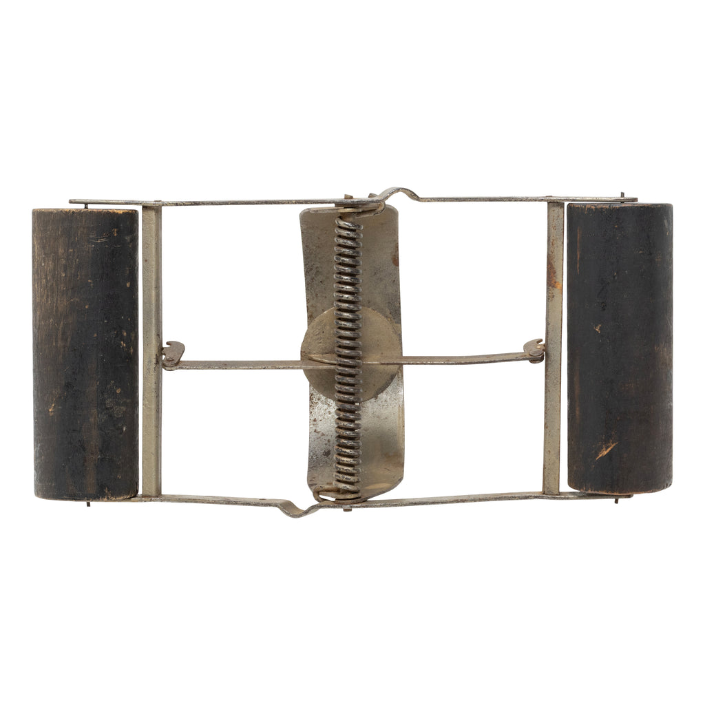 Funsten Bros. & Co. float trap. Metal pieces have been painted at some point obscuring markings. Ealry 20th Century. St. Louis, Missouri. Funsten Bros. & Co. began as a small operation in St. Louis in the early 20th Century. Over the years, they have built up a significant reputation as the biggest fur-buying and selling establishment in the world. Their success is attributed to their effective methods in dealing with trappers and shippers, which have led to a high demand for their products. A rare trap. 11 3/4"