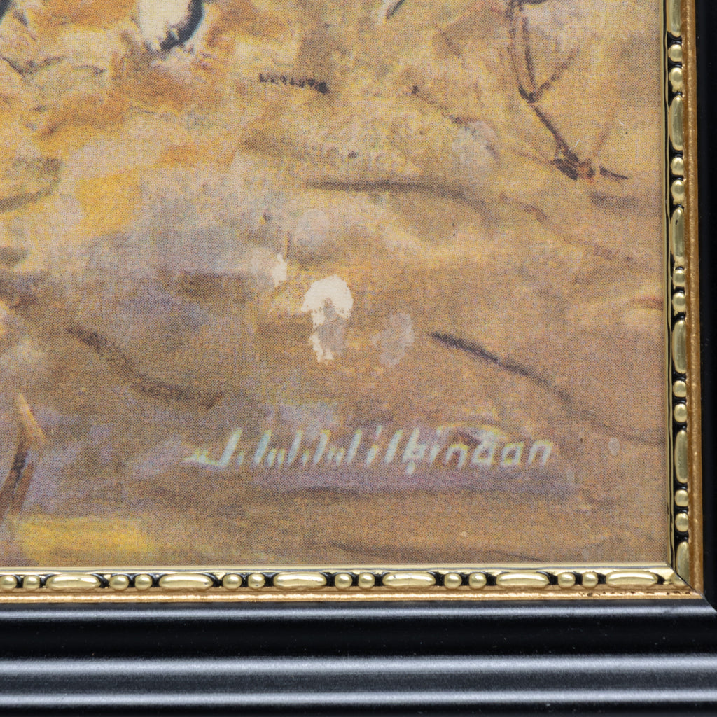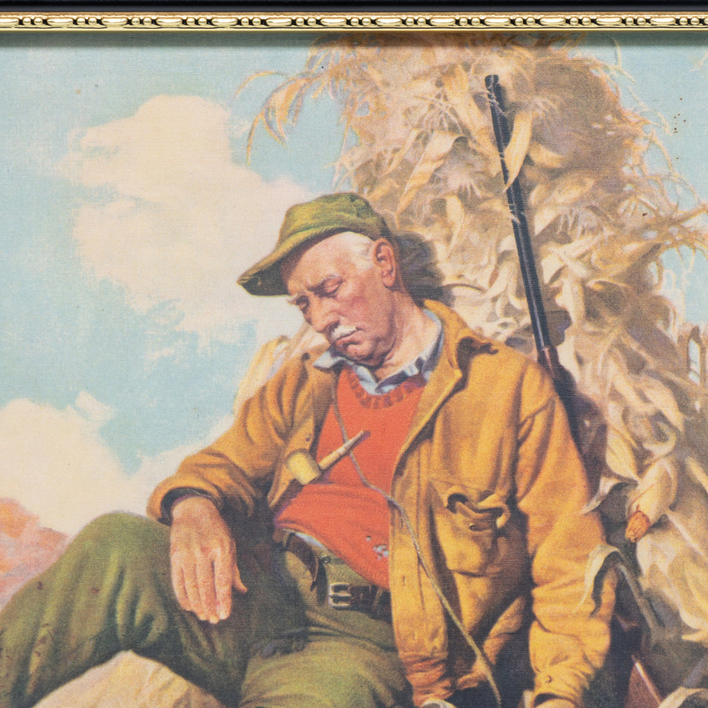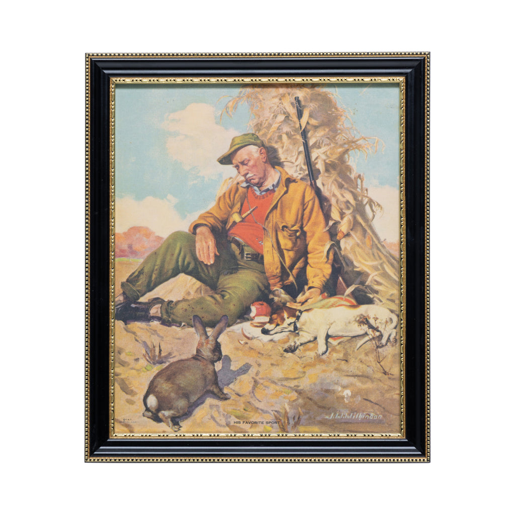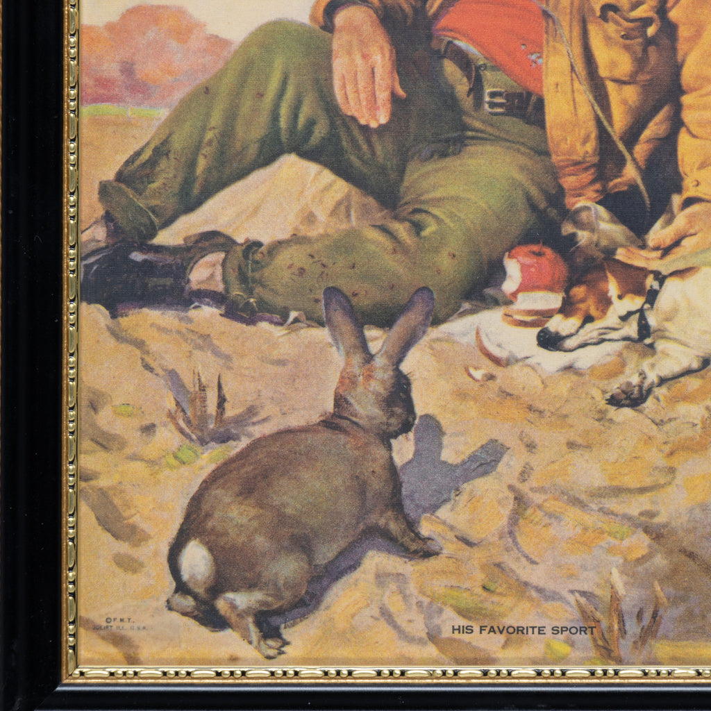 Sporting calendar art print "His Favorite Sport"; 7" x 9" framed 8 1/2" x 10".