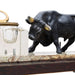 Inkwell desk set with vintage crystal inkwell and metal-formed bull. On marble plaque, mounted on wood with claw feet. 12" x 5" x 7"