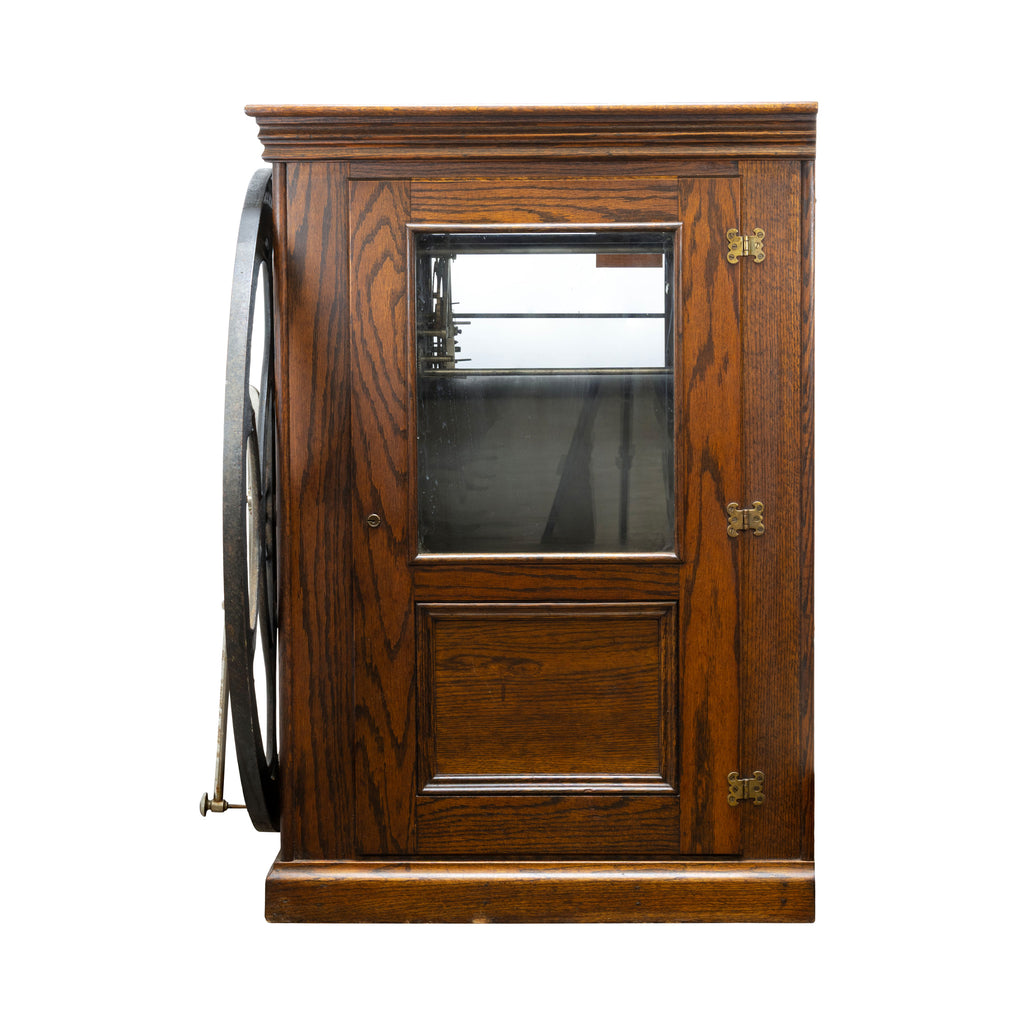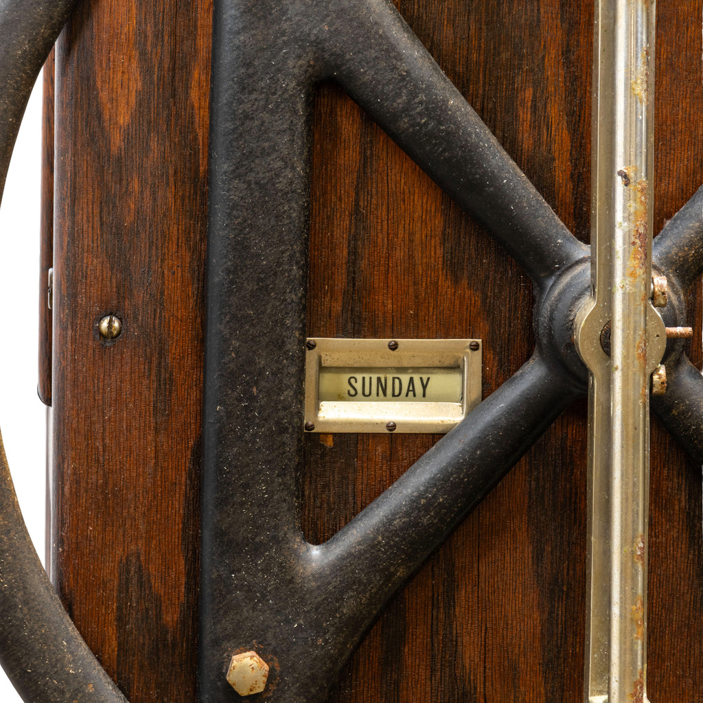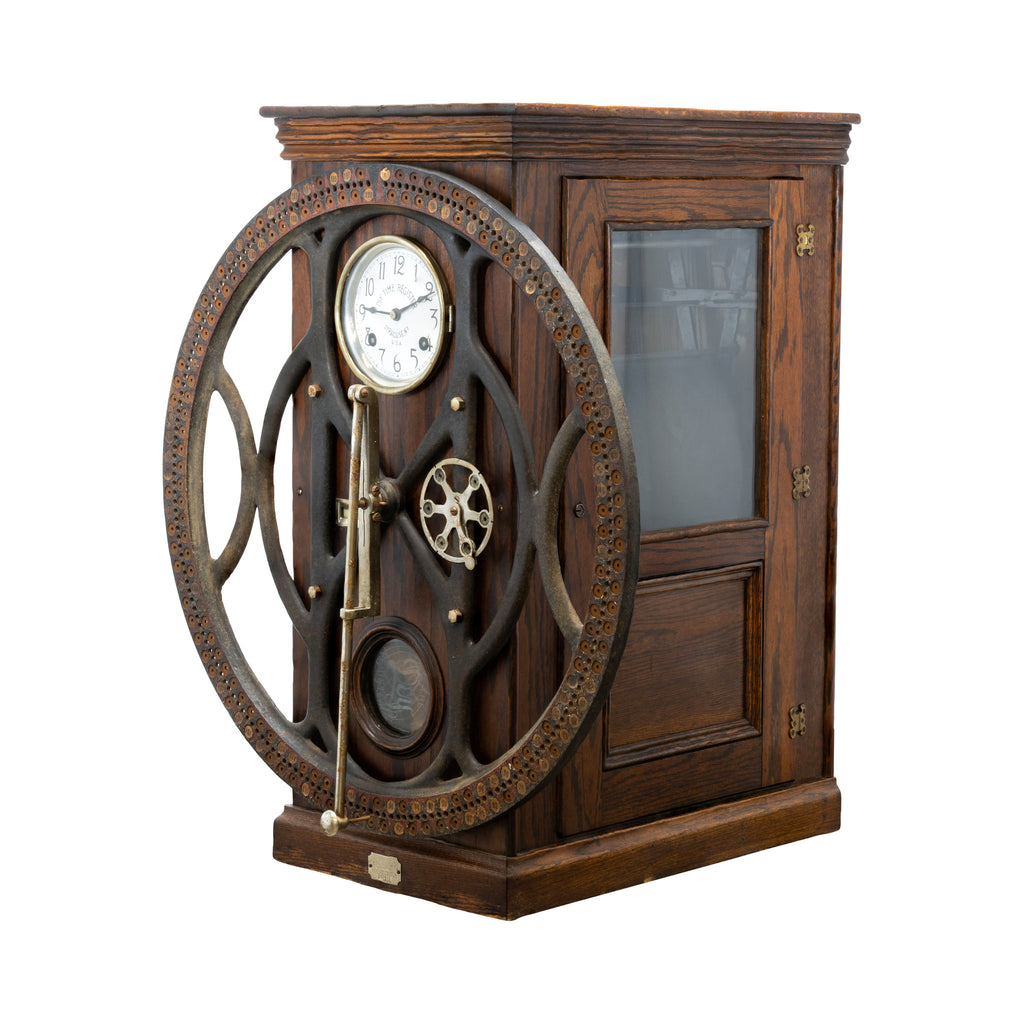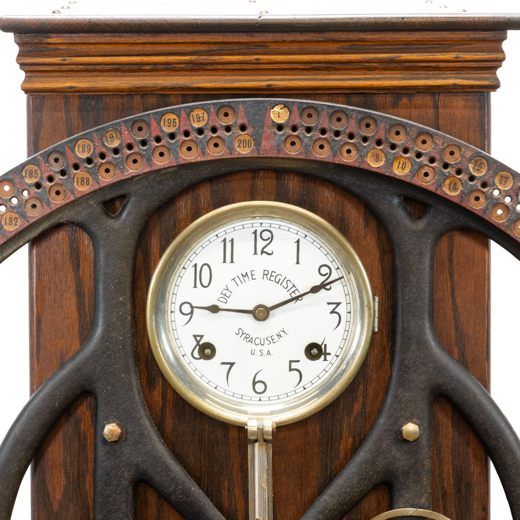Recording Dial Clock by the International Time Recording Company. he clock is in nice presenting condition with only areas of normal wear to the outer wooden case. The glass is all intact with no cracks or breaks. Plaque reads "Manufactured by International Business Machine Corporation International Time Recording Division" with 7 patents. The first 1911, the last 1916. At the end of the 1800s and early 1900s, the industrial revolution was taking place and large numbers of people were taking jobs in the cities. Being punctual was the expected behavior as "time is money" attitude prevailed. Also, recording scrutinizing expenses for labor, materials and overhead were getting more attention than ever. In the 1890s timekeepers, clerks who kept track of employees' hours in handwritten logs, found that machines were beginning to replace them. By the early 20th Century International Time Recording Company supplied an entire line of timekeeping devices, including master clocks, time clocks and time stamps.
