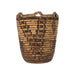 Klickitat pictorial basket with man figures, diamond, and "V" geomtric design; imbricated rim and rawhide carrying string.