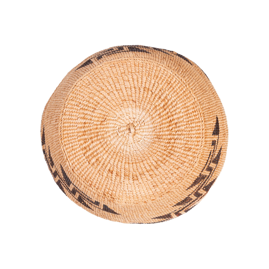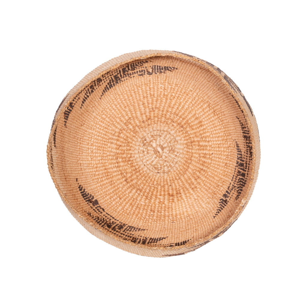 Large Klamath basket with geometric design and two tone bottom and top.