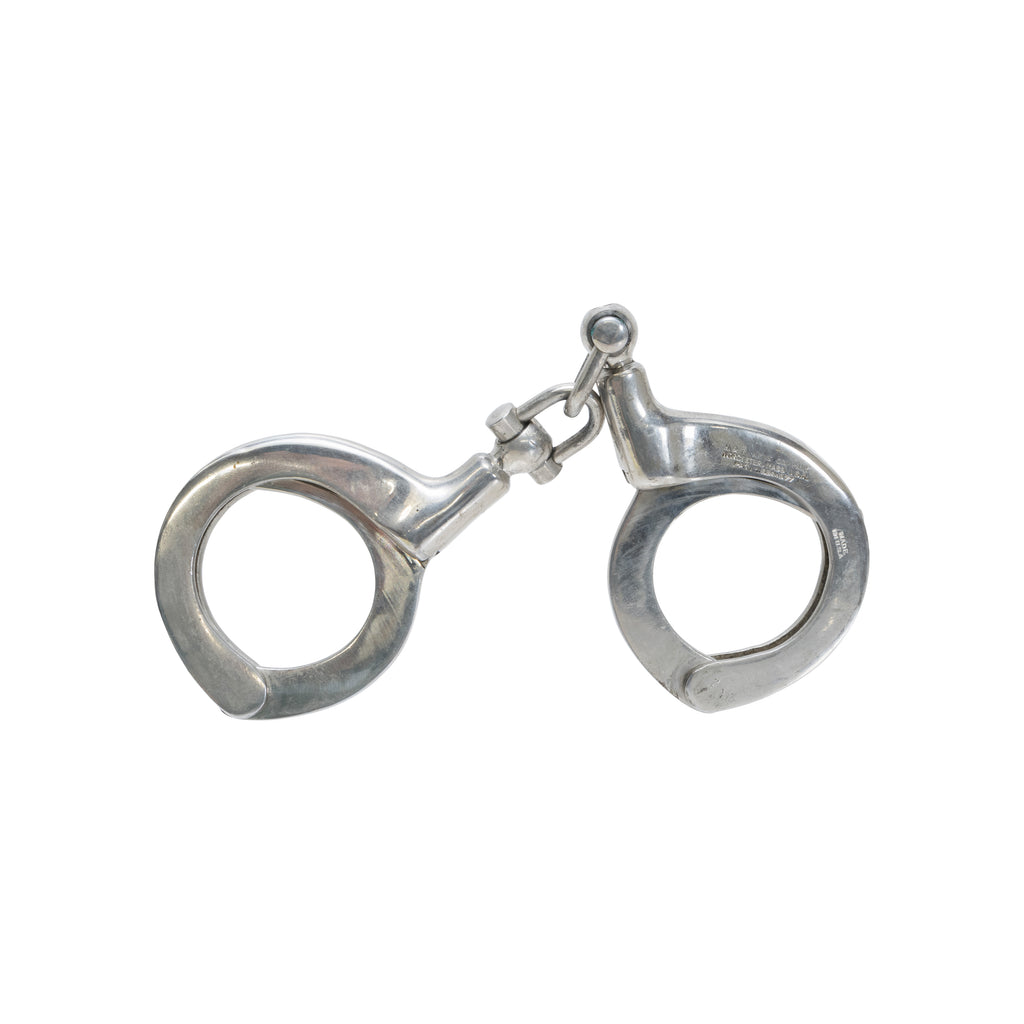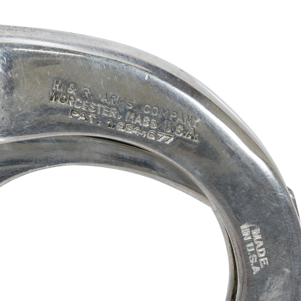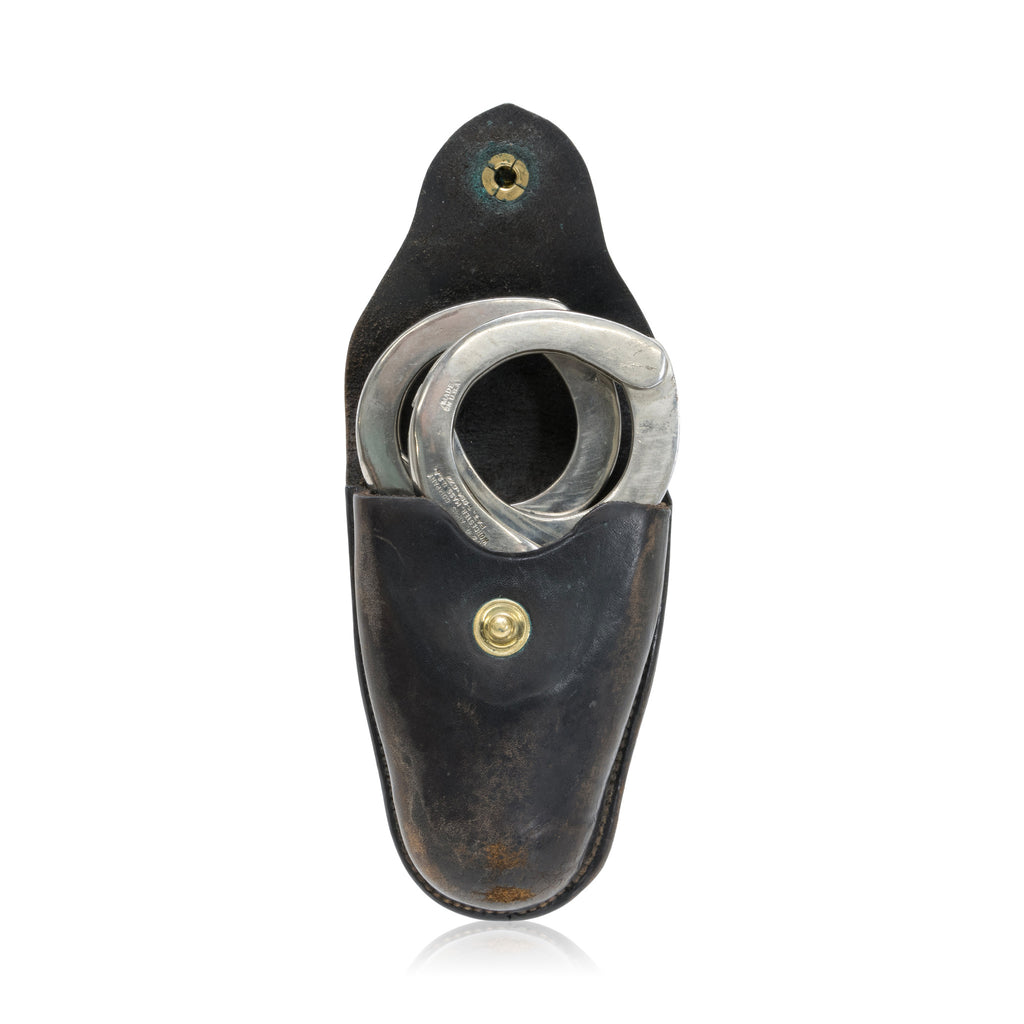 M&R handcuffs with original key and leather case. Marked M&R Arms Co. Worchester, Mass. USA and patent number.