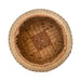 Makah lidded basket with top knot. Two whale boats and two seabirds on side design. In the 1860s the Makah people at Neah Bay developed a cottage industry producing trinket baskets. These were very labor intensive, fully twined baskets of twisted cedar bark. Through the 1930s they wove thousands of the small colorful trinket baskets for sale.