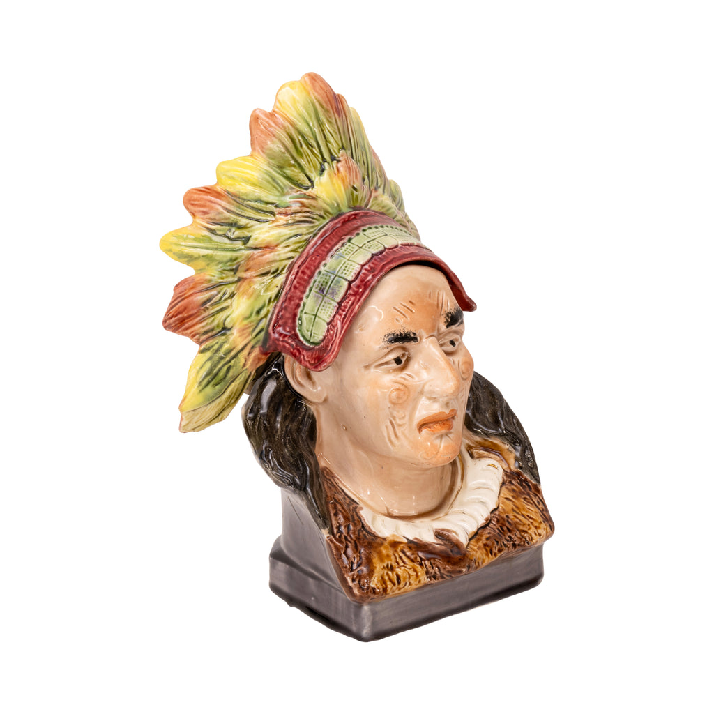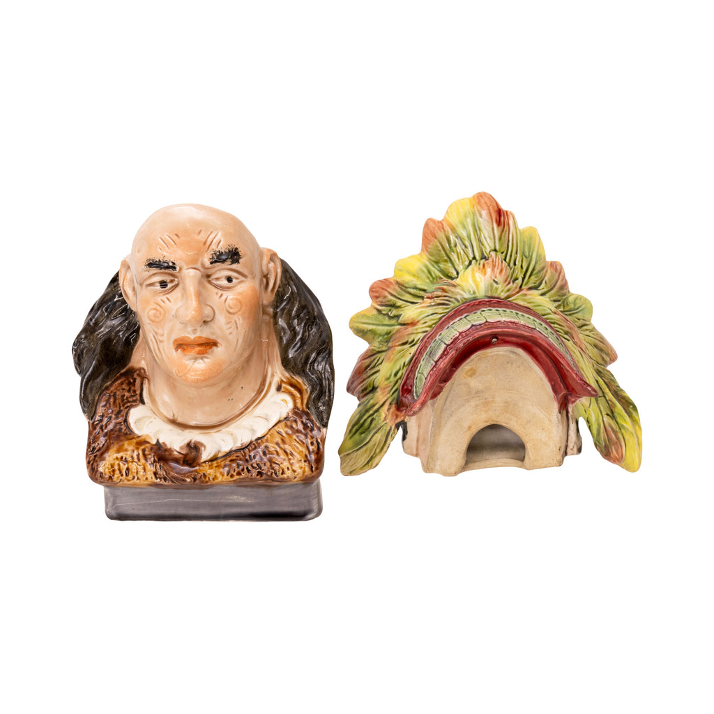 Native American humidors. Four figural majolica humidors depicting Native American chiefs. 8 1/4" x 8 1/2"H x 5 1/4"W