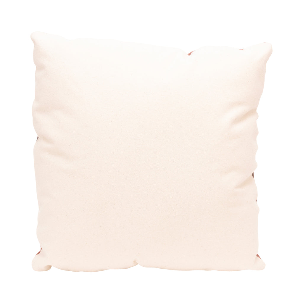 Native transitional lodge pillow. Handmade pillow with front made of brown and sepia leather with square of Navajo 1880's transitional weaving in center. Backed with canvas. Featuring natural dyed colors of red and grey with central "X" or cross design. 14" x 14"