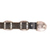 Third phase conchos is when you start to see the “butterfly” or “bow” appear between conchos and the use of turquoise as an adornment. A butterfly (bow) is a smaller concho in between bigger conchos. A belt with butterflies and sometimes turquoise would be from the early 1900s – 1930s.