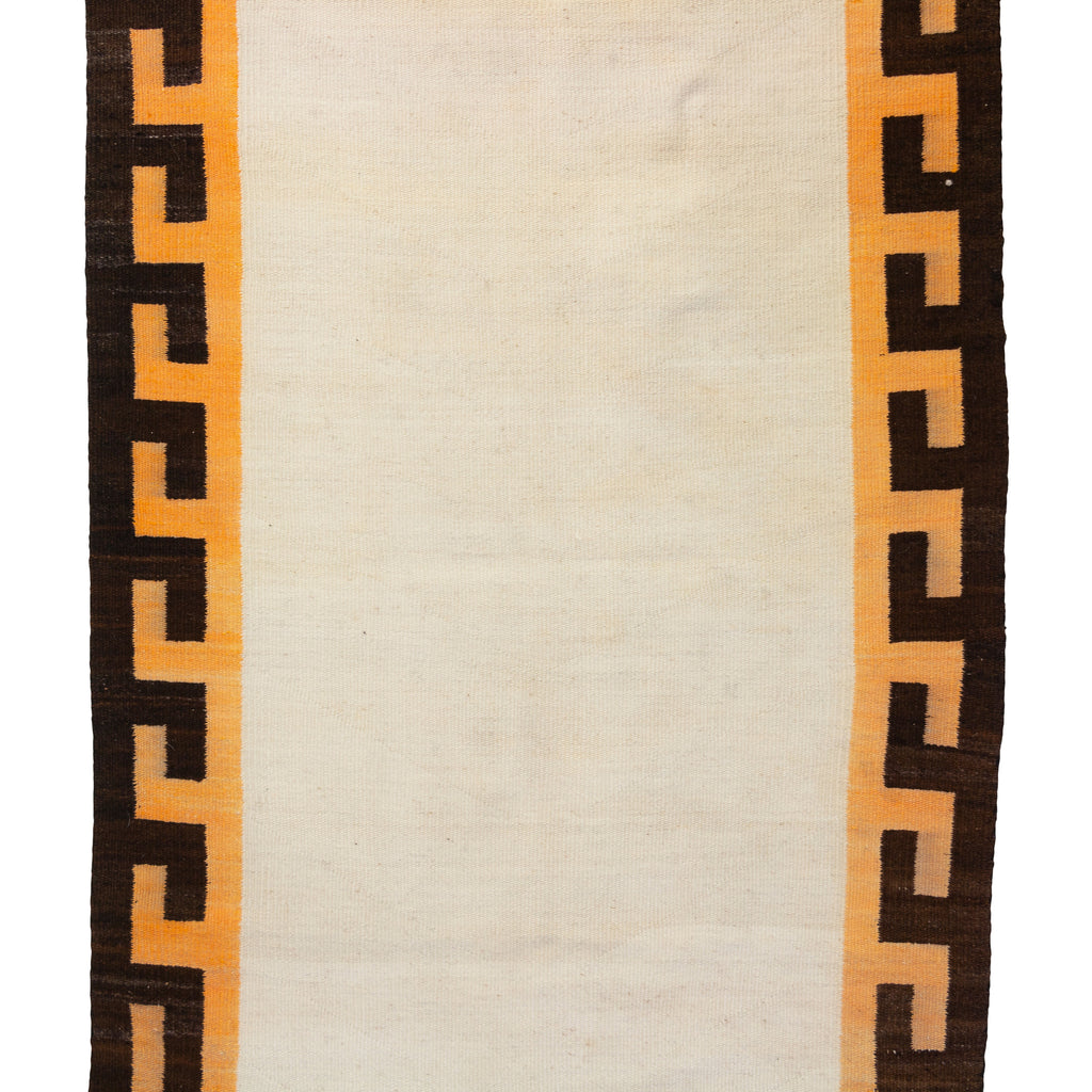 Classic Navajo Crystal double saddle blanket with fish hook border and open center. 32" x 51"