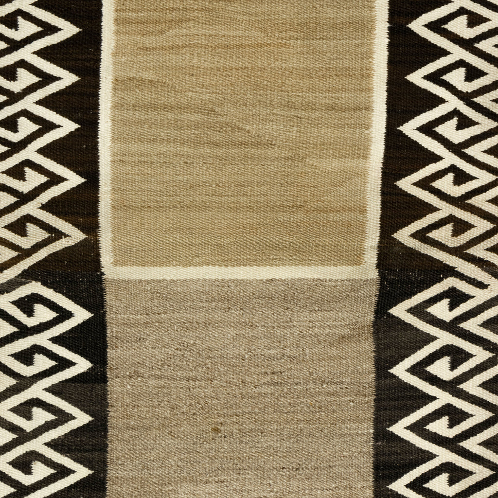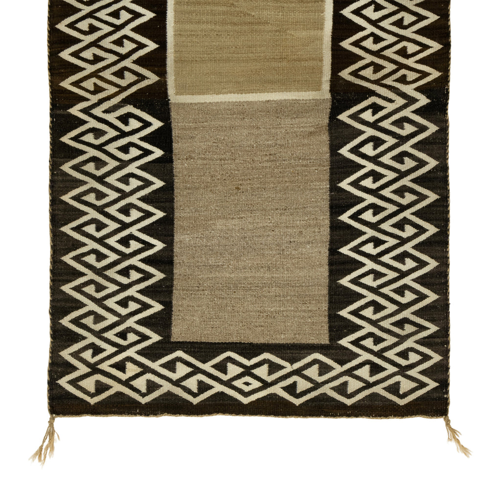 Navajo Crystal double saddle with open double center, with large fishhook border. All naturals; collector piece. 32” x 54.”