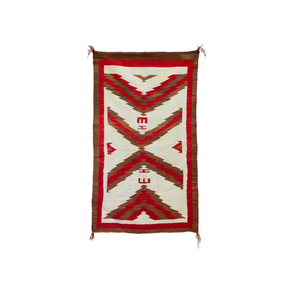 Navajo crystal pictorials with letters "E" and "H" and stylized eagle on one end. 36" x 60"