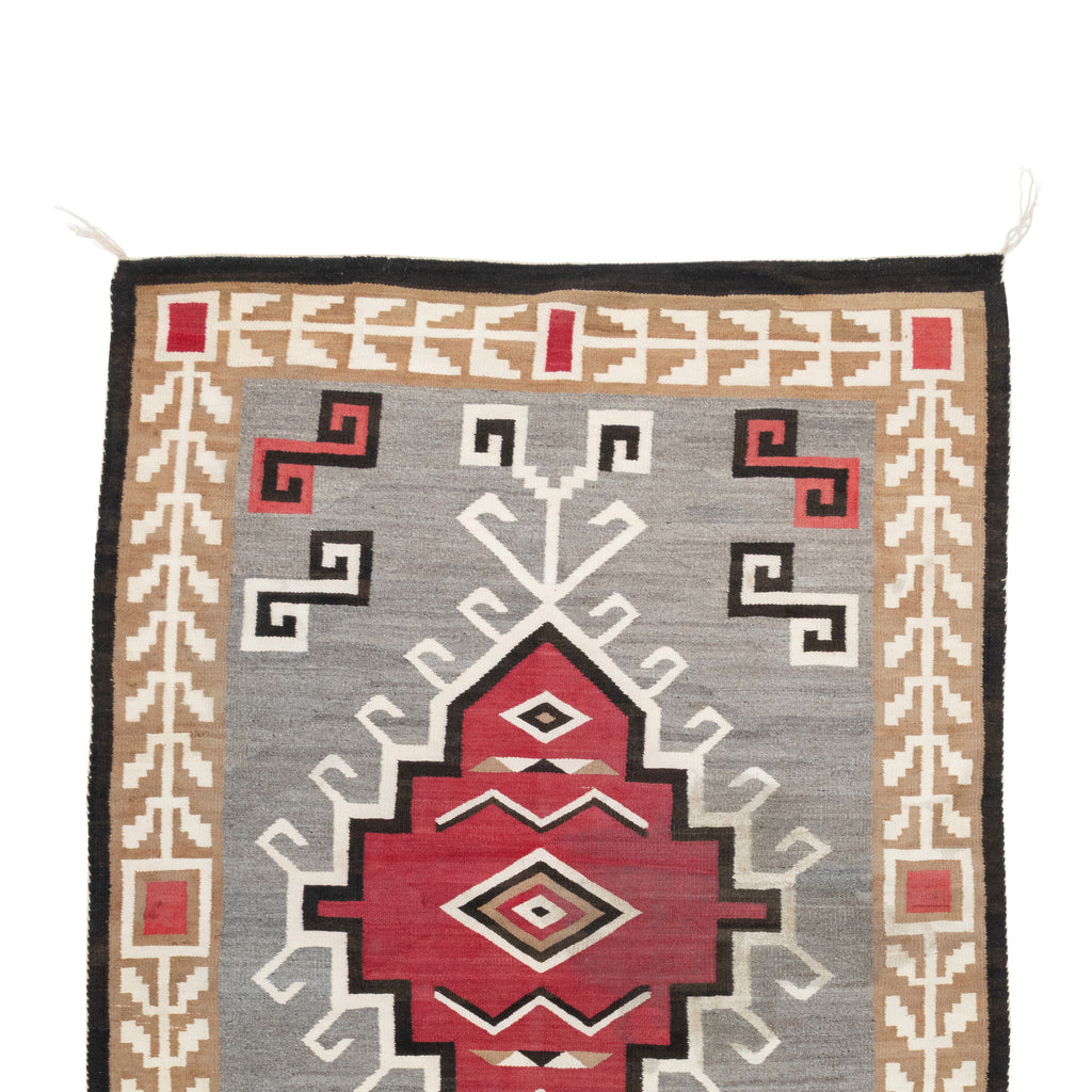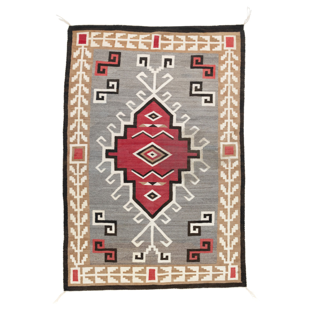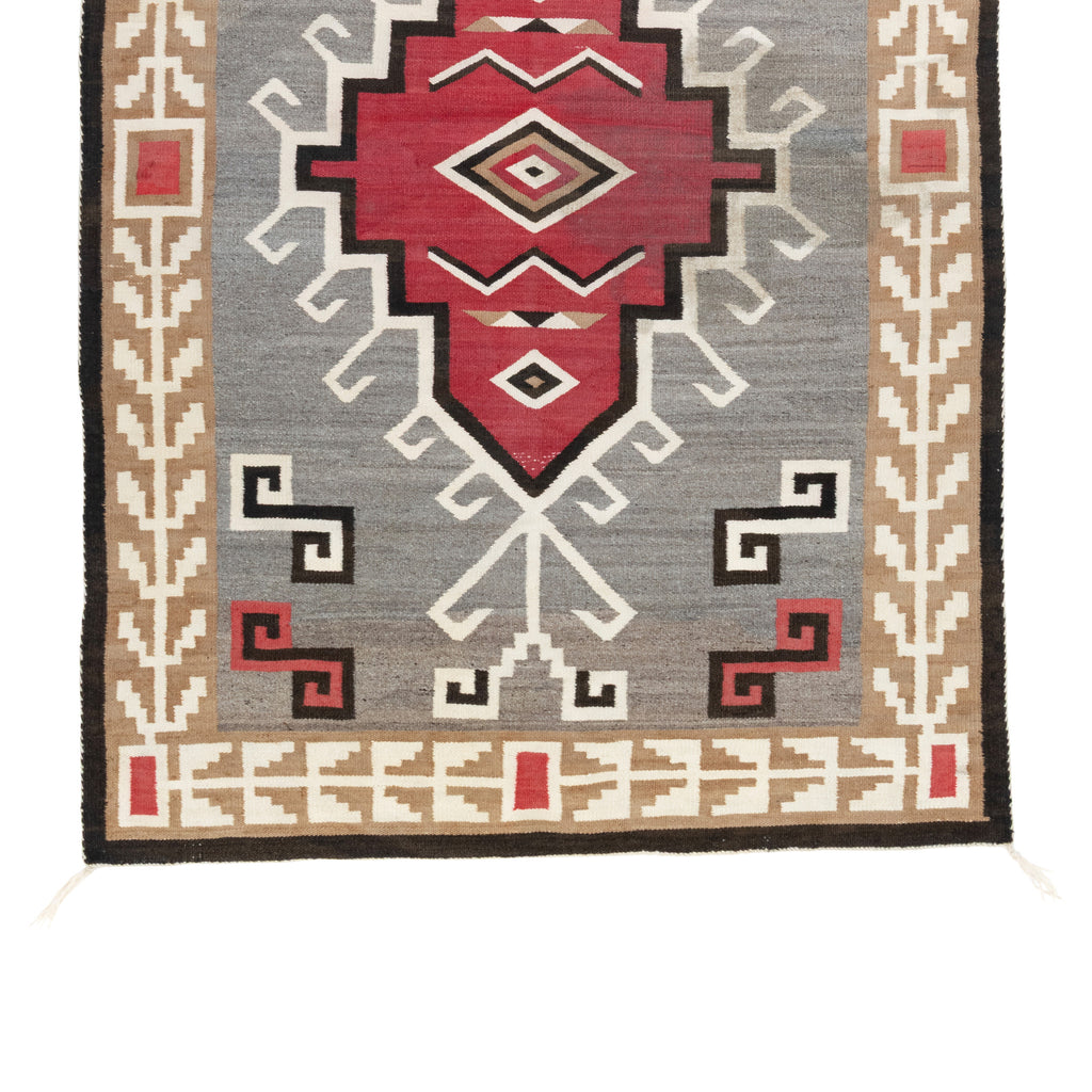 Navajo crystal weaving. Very fine weave. Exceptionally graphic with stylized waterbug in center. Circa 1920. 4' x 5'9".