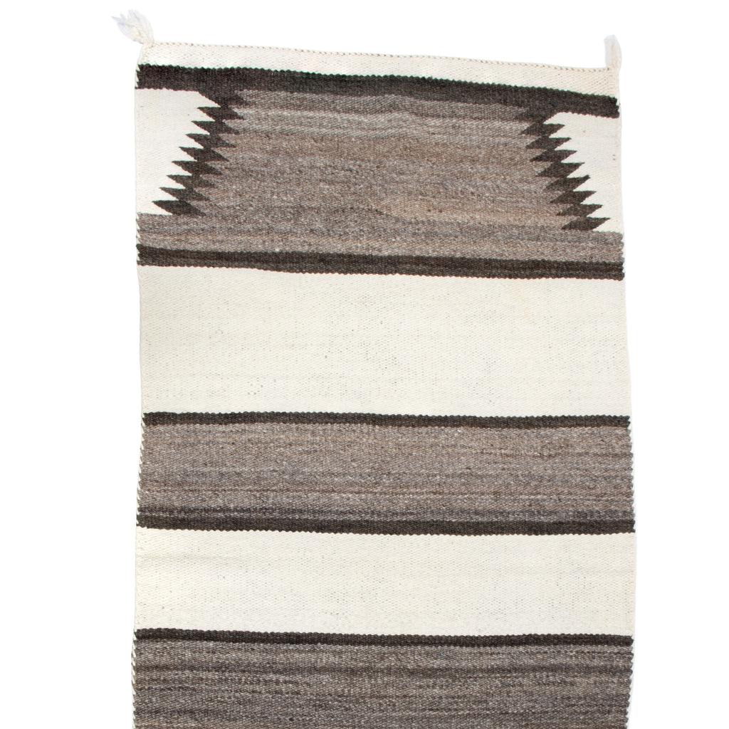Navajo double saddle blanket. All naturals, banded, unusual brown warps. A size made for own use. A collector piece. 58" x 28"