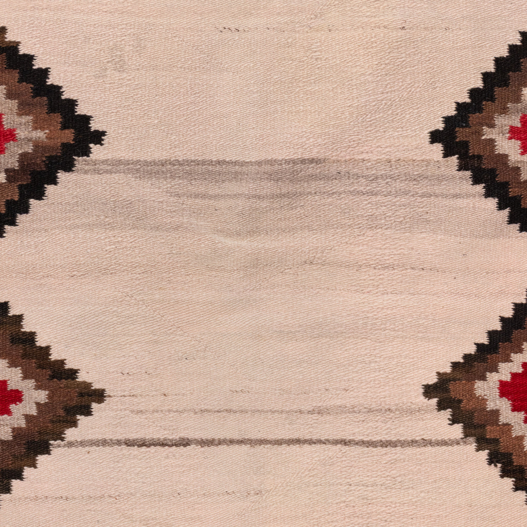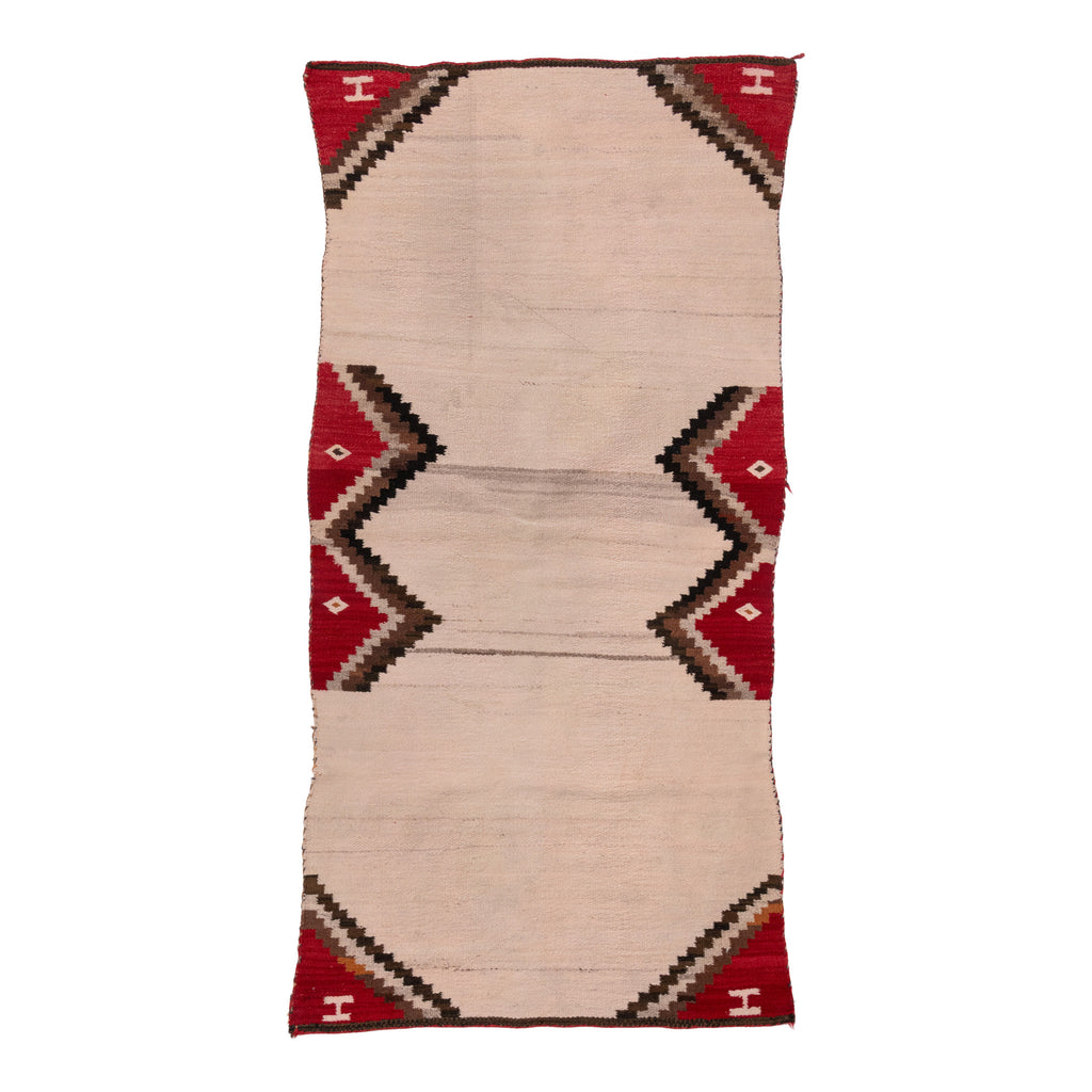Navajo double saddle blanket. Natural with red corners, black, black and tan diamonds in outside center with H's in the corner. Great for display piece under a saddle. 62" x 31"