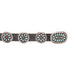 SIZE: Total belt length 41 3/4"; buckle 1 1/2" x 2 1/4"; conchos 1 1/2" x 1 1/2"