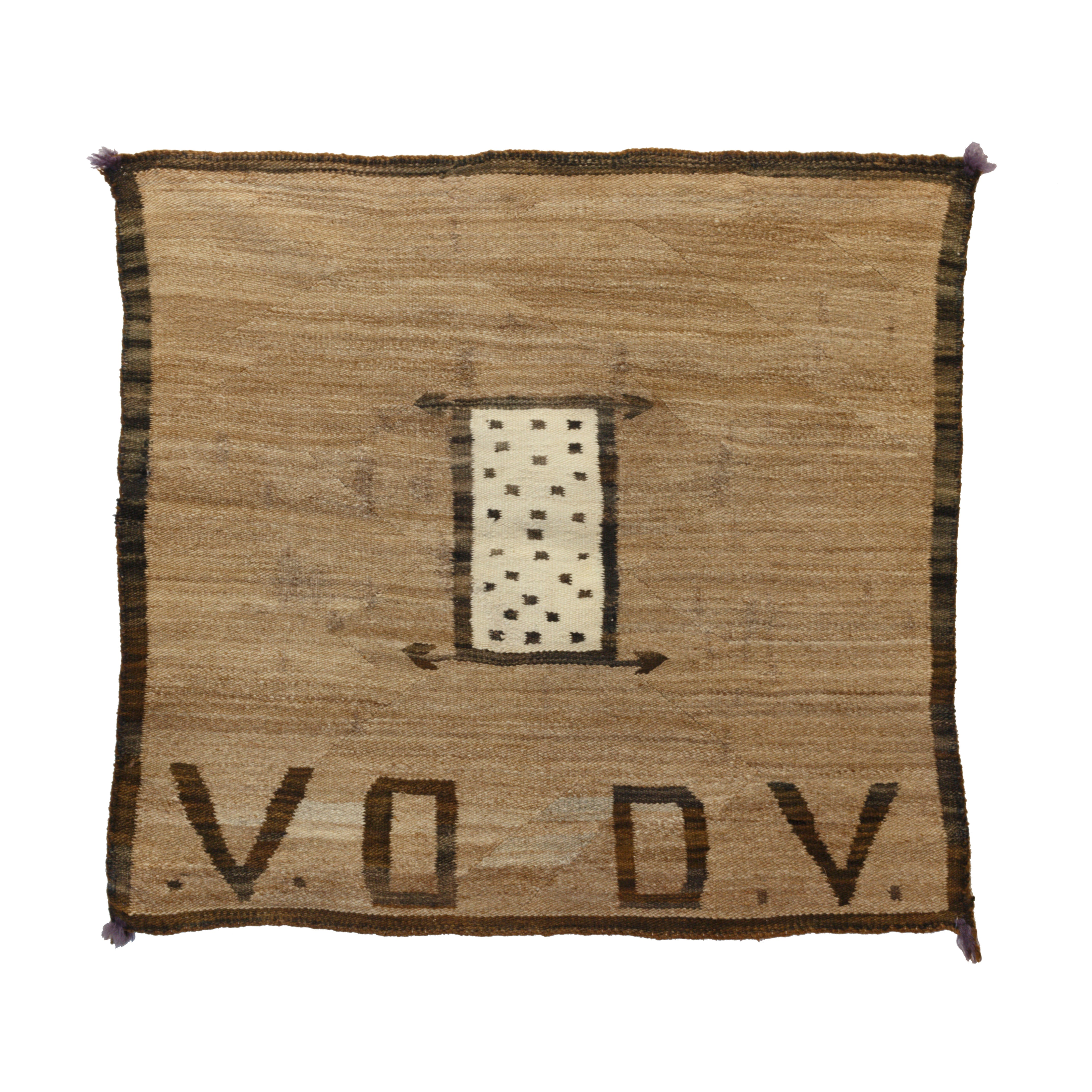 Navajo single saddle with “V.D.,” standing for Victory Dance. Collector piece; ex Tanner trading post. 35” x 38”.