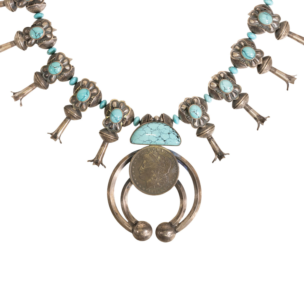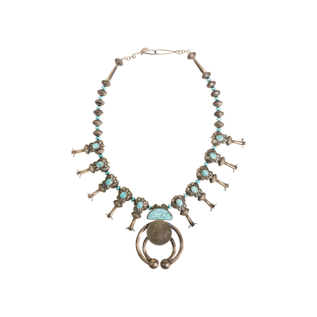 Navajo Turquoise and Silver Dollar Squash Blossom