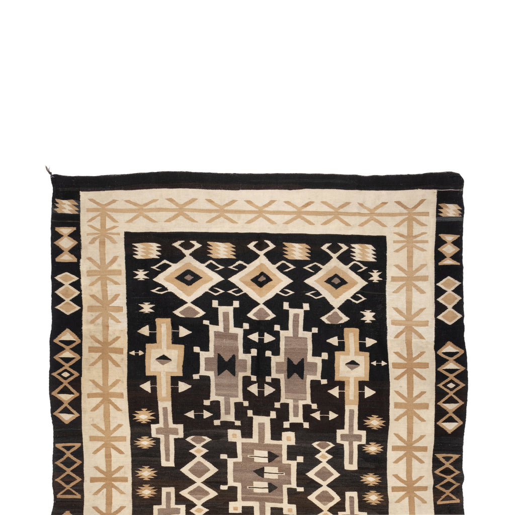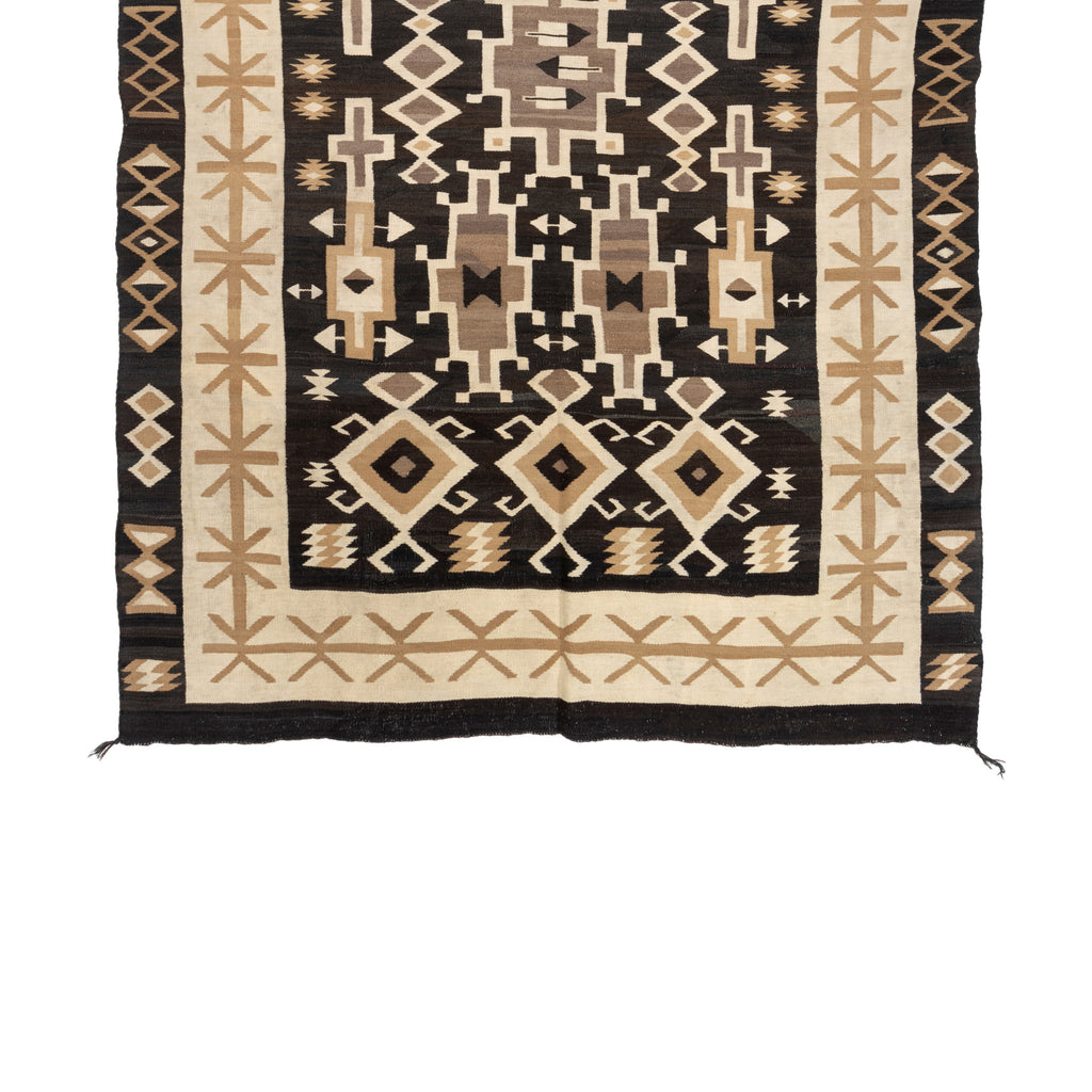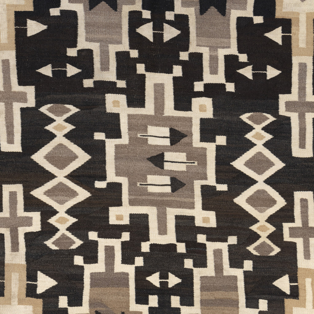 Navajo Two Grey Hills; tapestry quality. Minor stains, some wear but “great” piece. 5’ x 7’2”