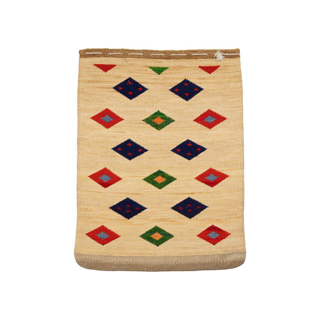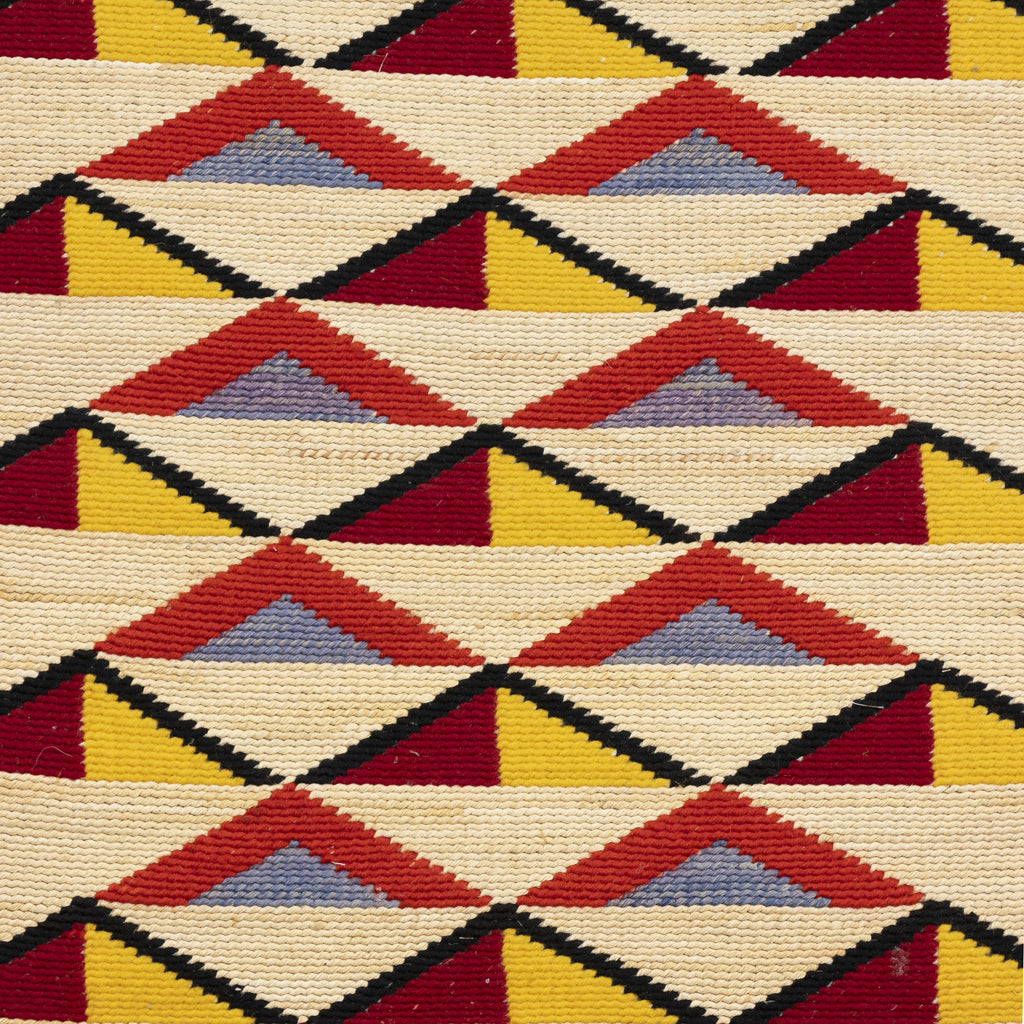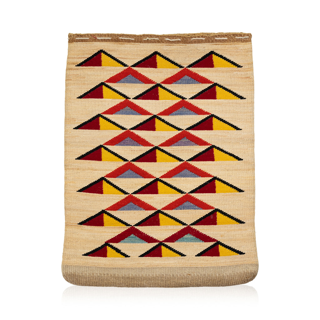 Extra large Nez Perce corn husk. Linen on corn husk. Different geometrics both sides. Trunk piece. Very bright.