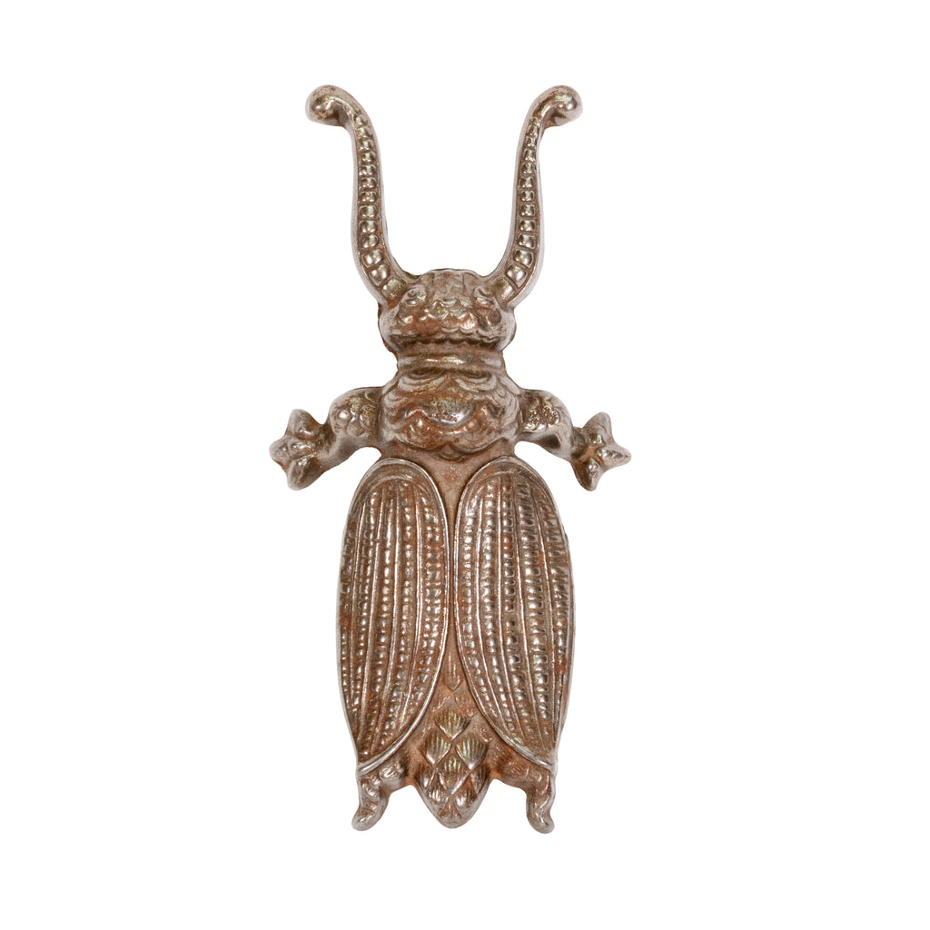 Nickel-coated beetle boot jack marked Peerag, England. 10"