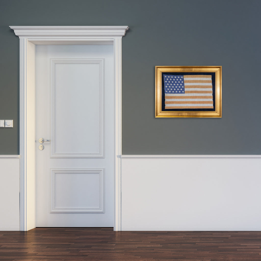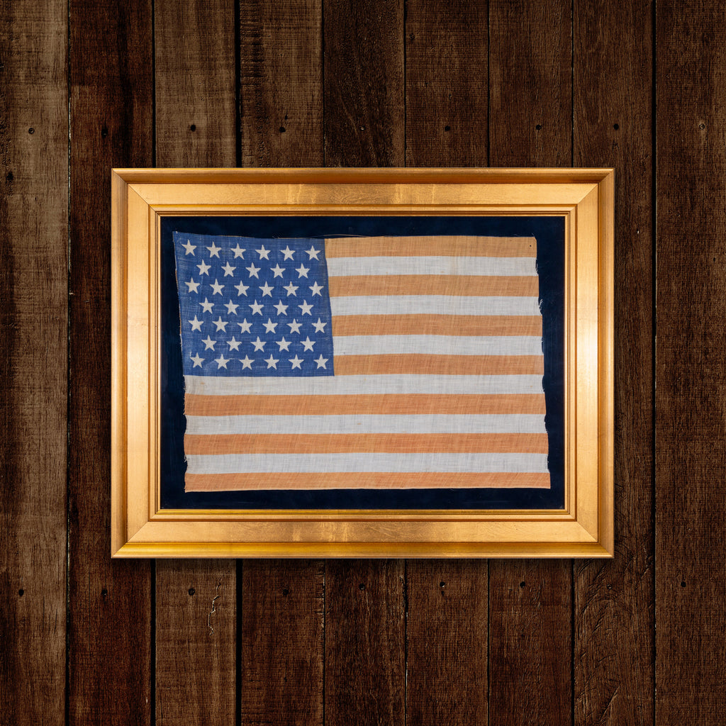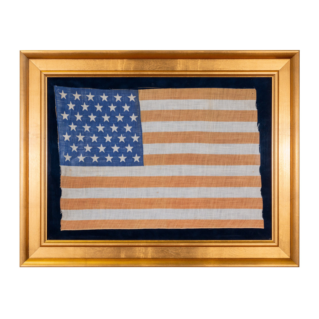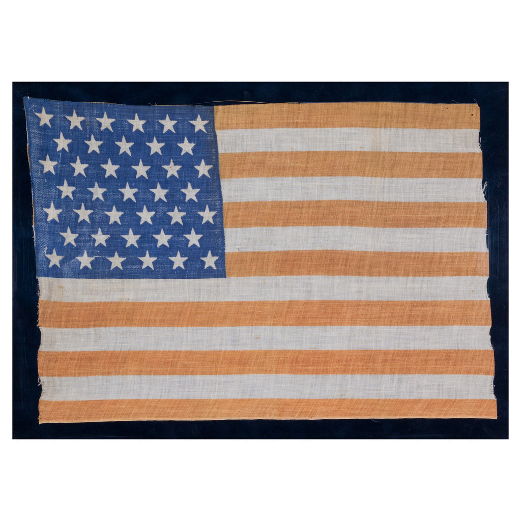 39 Star North Dakota statehood flag printed on cotton. 6-5-6-5-6-5-6 configuration pattern. North Dakota gained statehood on November 2, 1889, however as South Dakota was also admitted as the 40th State on the same day, this flag became instantly obsolete. 16” x 12”
