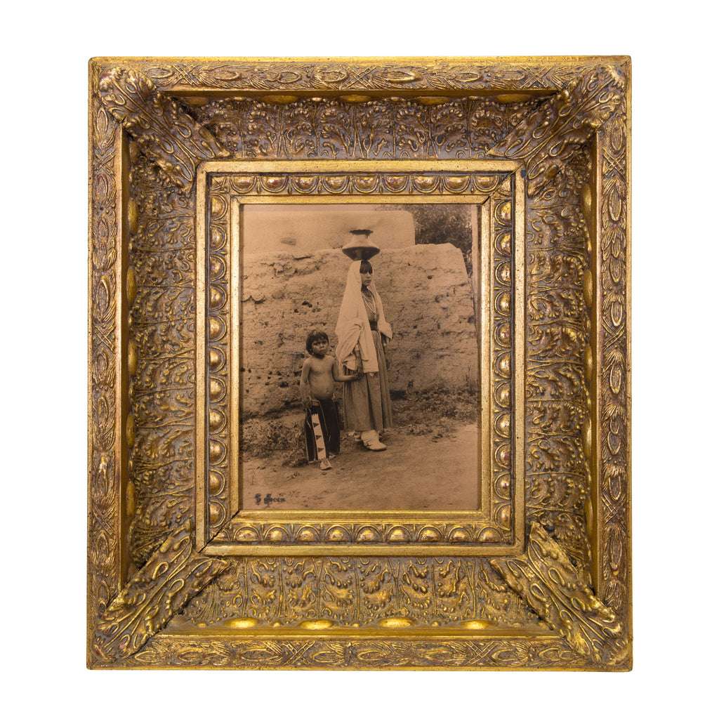 "Off to the River" gold tone photograph signed by Carl Moon; the woman is Maria Marcos - 1914. Published in "In Search of the Wild Indian" by Tom Driebe (Original frame), page 162. A copy of the book comes with.