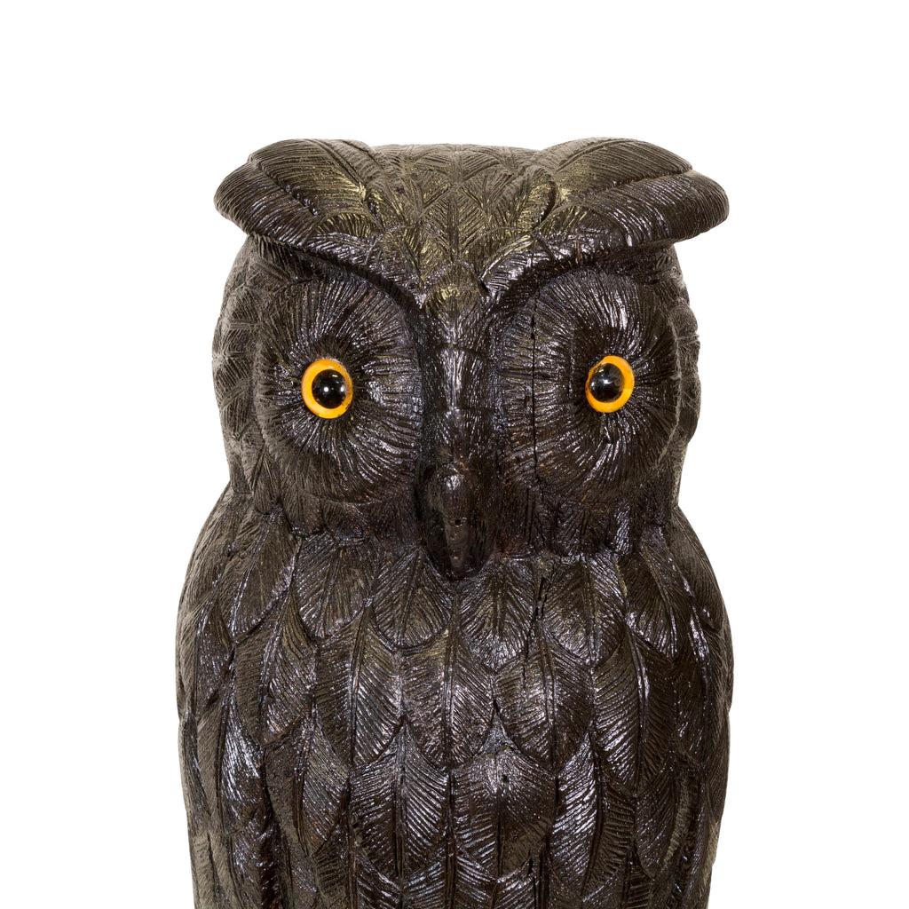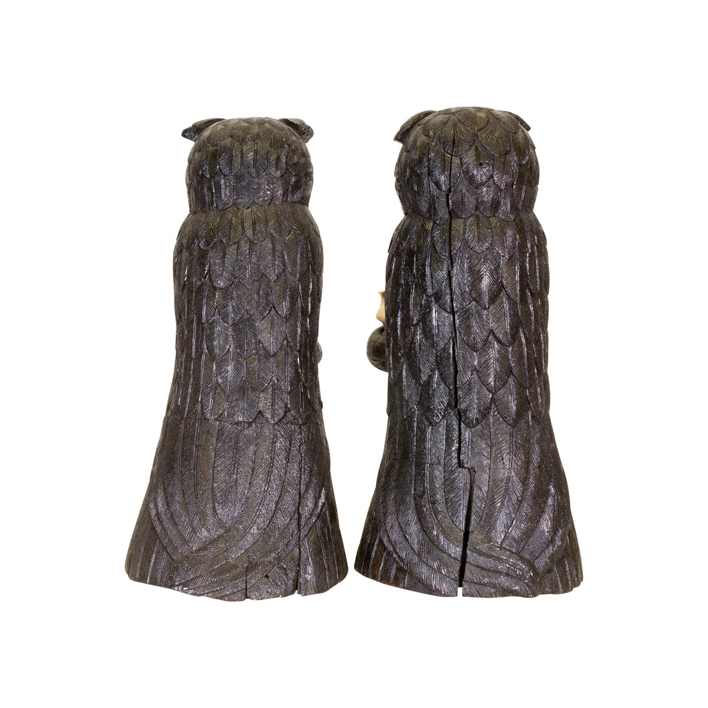Matched pair of Irish candle holders carved by Cornelius Googin, Dublin, Ireland, Circa 1870. Glass eyes and candle sockets. Carved of petrified bog oak over 7,000 years old. Note: relief shamrock on the base of each.