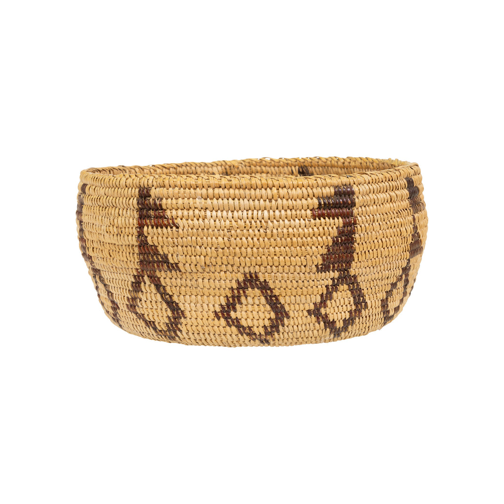 Paiute bowl shaped basket with geometric design. Exceptional condition.