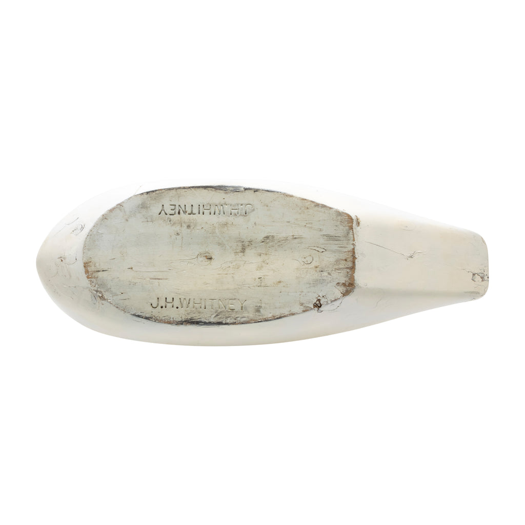 Swan decoy by Paul Gibson, Have de Grace, Maryland. Paul's decoys were handmade until he bought Madison Mitchell's lathe. Gibson's sturdy decoys have chunky features and heads of white pine. He carved in the Havre de Grace style, but made the bodies and tails of his birds thicker than usual and gave them shorter necks. Gibson could carve any species, but was locally famous for his swans. Though he did not carve in quantity, Paul earned the reputation of quality decoy maker among the carers of the Susquehanna Flats.