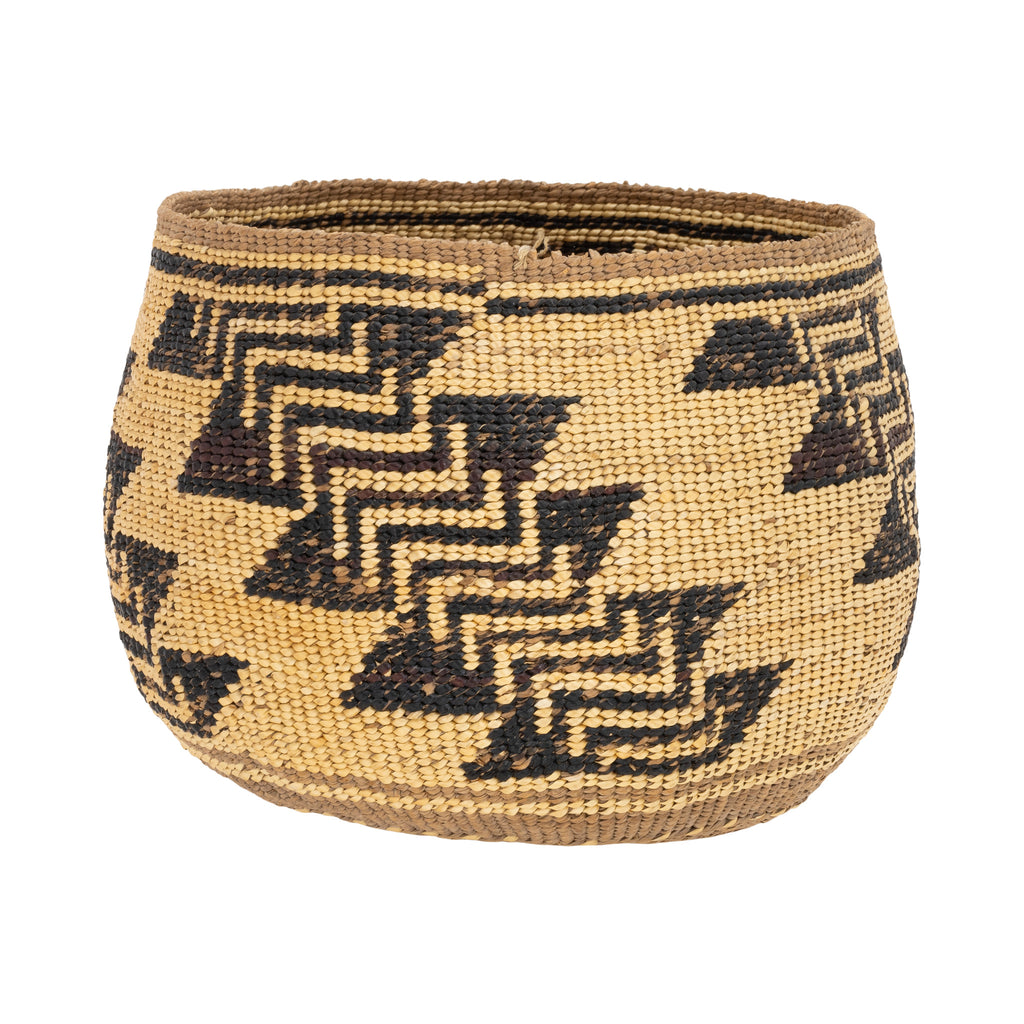 Pit River basketry bowl. 7"D x 5"H. Graphic design.