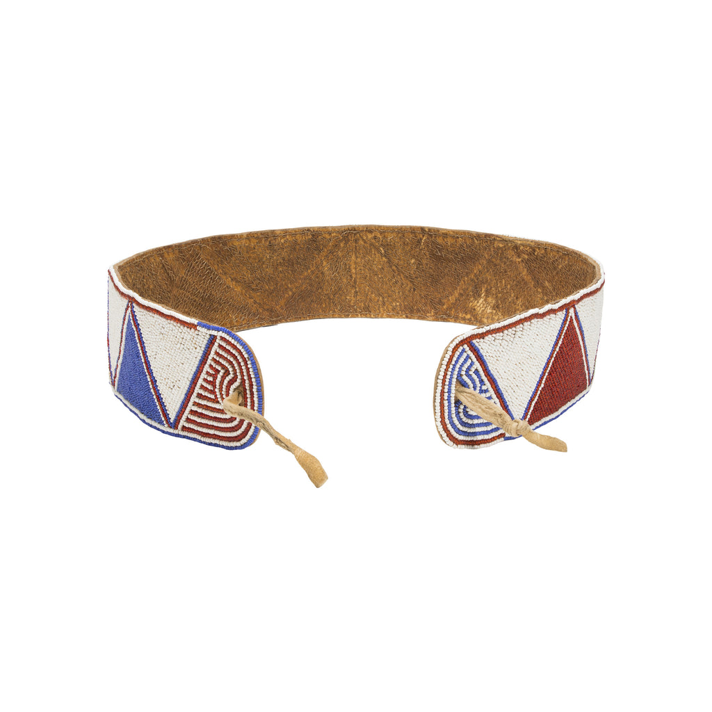 Fully beaded Plateau belt on saddle leather. Note: all back stitches go through.