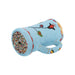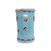 Plateau beaded crockery mug. Floral and butterfly motif. Thread sewn over canvas. Blue background with scatterbeads on bottom. 7"H x 4"D plus handle