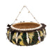 Fully-feathered Pomo gift basket with shell disk beads and quail fobs surrounding opening, and abalone drops decorating the body. Early 20th Century. Oldbrass collection tag noted "BA-104". Ex. Emily T. and Adolphus Andres Colleciton. 3 1/4"H x 7 1/4"D