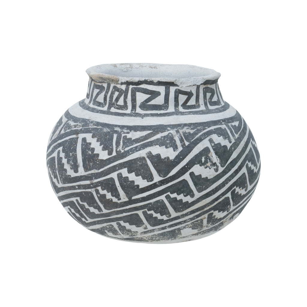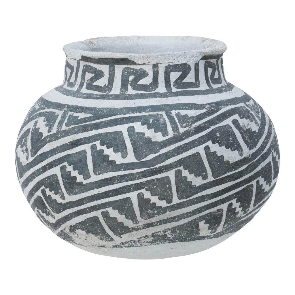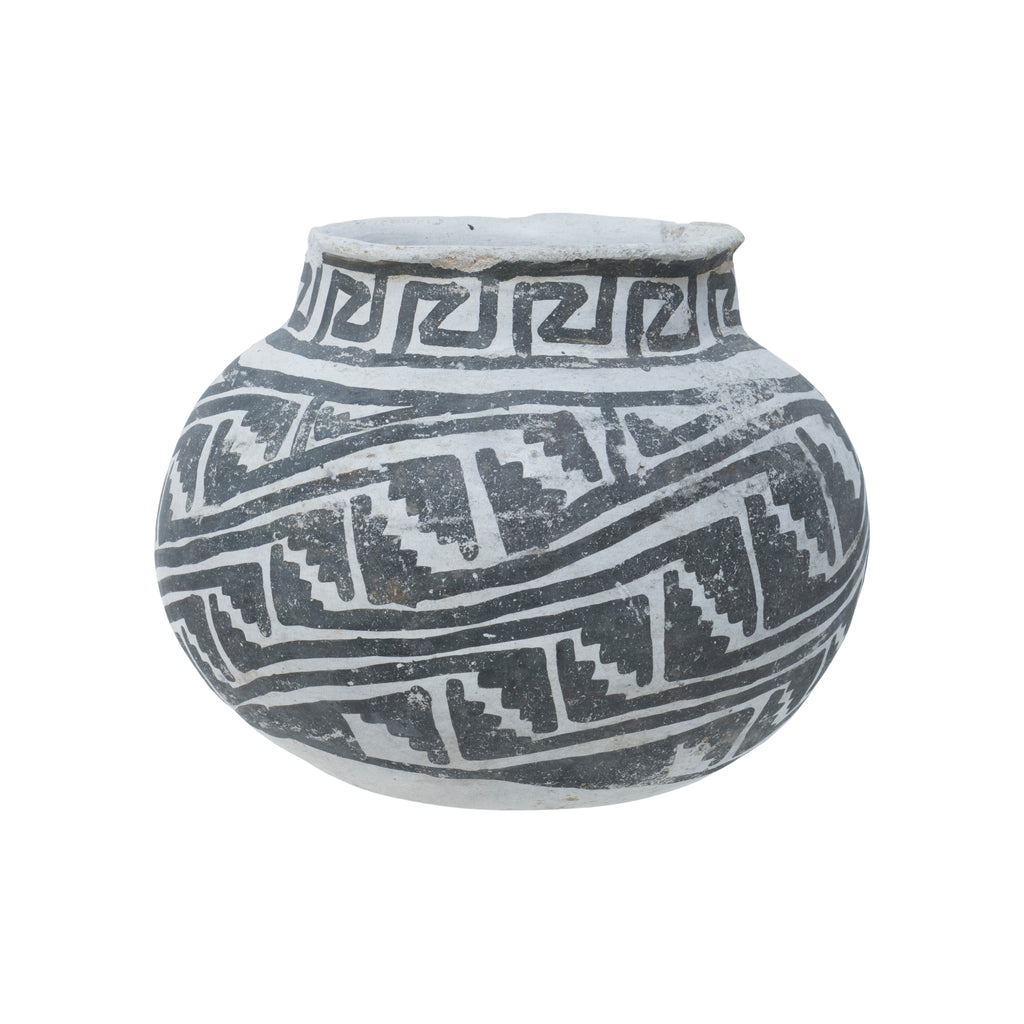 Prehistoric snowflake black on white Anasazi pottery jar. Painted outside. 1175 - 1325AD