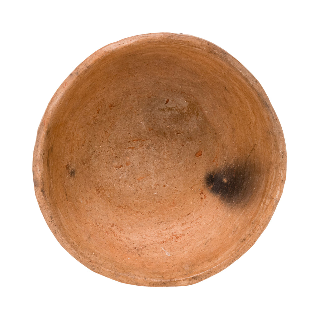 Native American, Southwest United States, Sinagua culture, ca. 7th to 15th century CE. A lovely pottery bowl of a minimalist hemispherical form with a flattened base, enveloped in beige pigment with 3 parallel, zigzag striations wrapping horizontally around the exterior. Size: 5.6" Diameter x 2.1" H. Provenance: Cultural Patina Gallery, Burke, Virginia, USA.