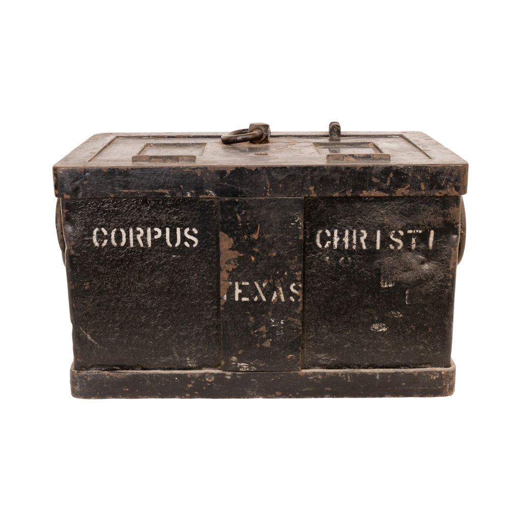Railway Express strong box with original markings on back. Corpus Christi Texas #2114. The most desirable size, 20" x 21" x 12".