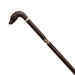 Remington only manufactured an estimated 2,000 .32 rimfire cane guns in the 1860s to 1880s in several variations. This cane gun features the distinctive large dog head handle and is marked "756" on the dark gutta percha on the shaft/barrel section near the joint, and "20" on the iron tip. The condition of the cane gun is good overall. It is mechanically functioning however, there is wear to internal components causing it to index with the trigger button at the top vs. the bottom firing position. The gutta percha shaft has smoothed a bit with age but is free from cracks and the serial numbers are still visable. The tip has been modified to use for walking, having an iron tip soldered to the original. This would need to be removed before firing. This antique cane gun is mechanically functional but should not be fired due to its age and potential risks. Like many from its era, it lacks caliber markings, so any caliber reference is speculative. The original design was patented by Remington's master mechanic John F. Thomas in 1858 and first produced using percussion ignition. The Remington cane guns have the distinction of being the first metallic cartridge long arm produced by Remington. Remington was also the only major U.S. manufacturer to produce cane guns. Due to the increase in street crime in both European and American cities in the 19th century, the need for a defensive weapon while still wanting to look sharp helped promote the production of these weapons. Remington advertised "The Remington Rifle Cane" as "Just the Thing for Taxidermists" and as "Protection against Dogs and Highwaymen."