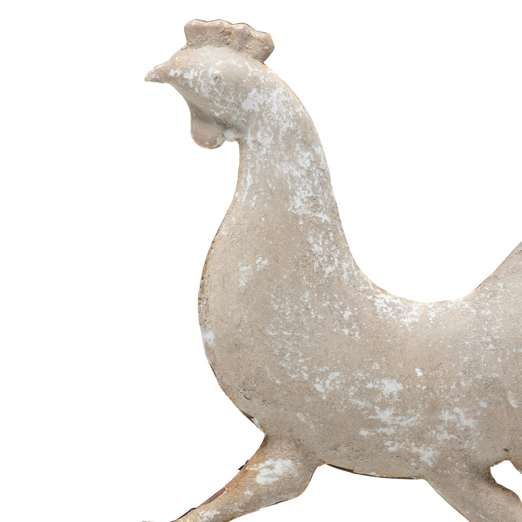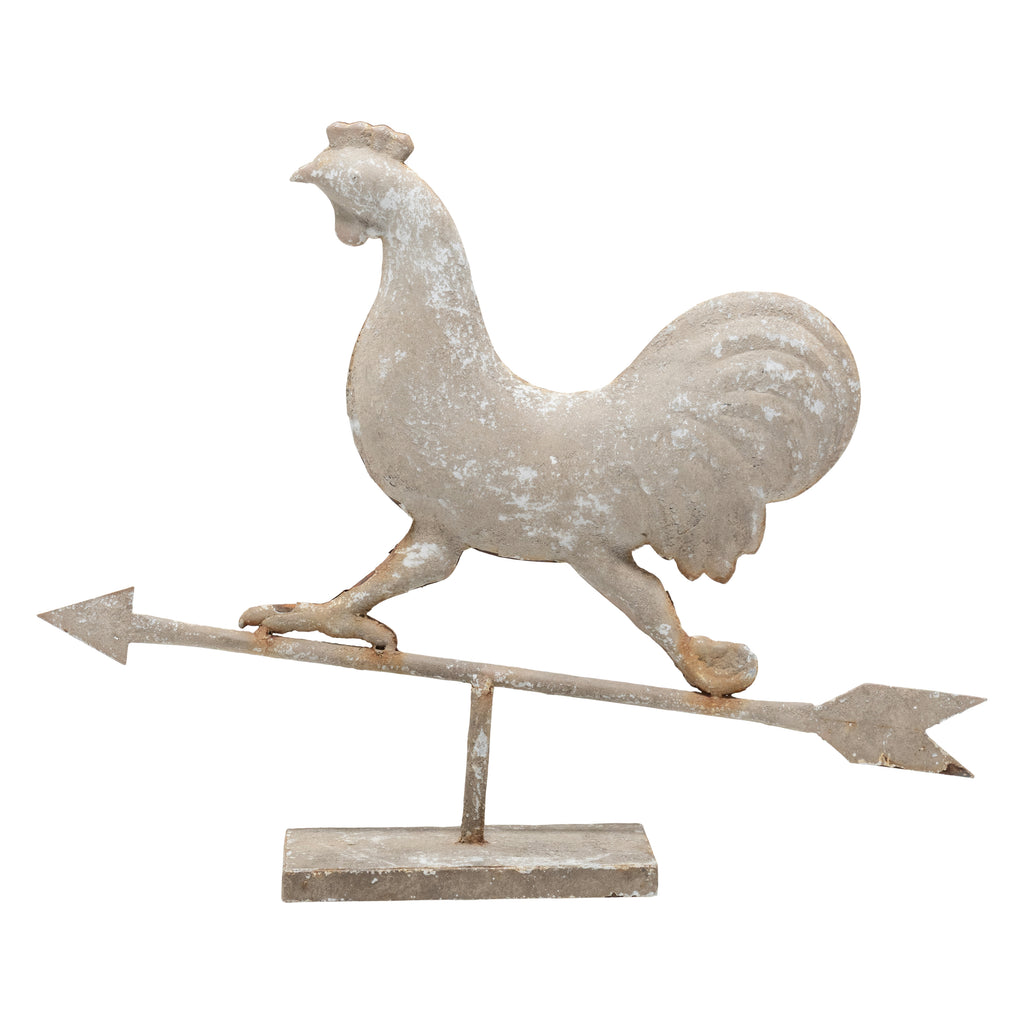 3 dimensional rooster weather vane on arrow. Attached to more modern base. Appears after to have been repainted. 23" x 19" base 5" x 9"