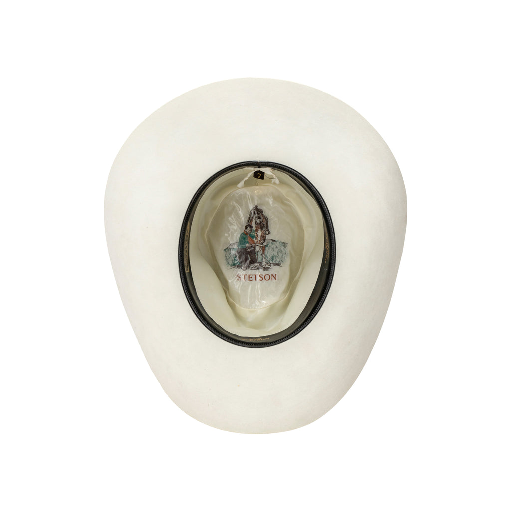 Roy Rogers personal Stetson cowboy hat. 3X Stetson silver belly hat with the "Made by Stetson Especially for Roy Rogers" embossed stamp. Size 7. Accompanied by a letter signed by Gary Rosenthal, Stetson Hats "This hat was made by our company for Roy Rogers. He made this his "style" hat. We did market this hat to the general public, so this hat has quite a bit of uniqueness and exclusivity to it."
