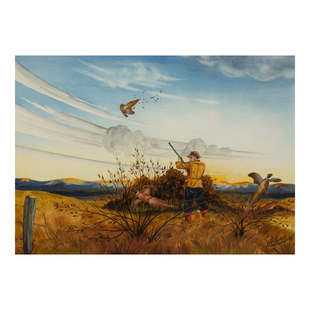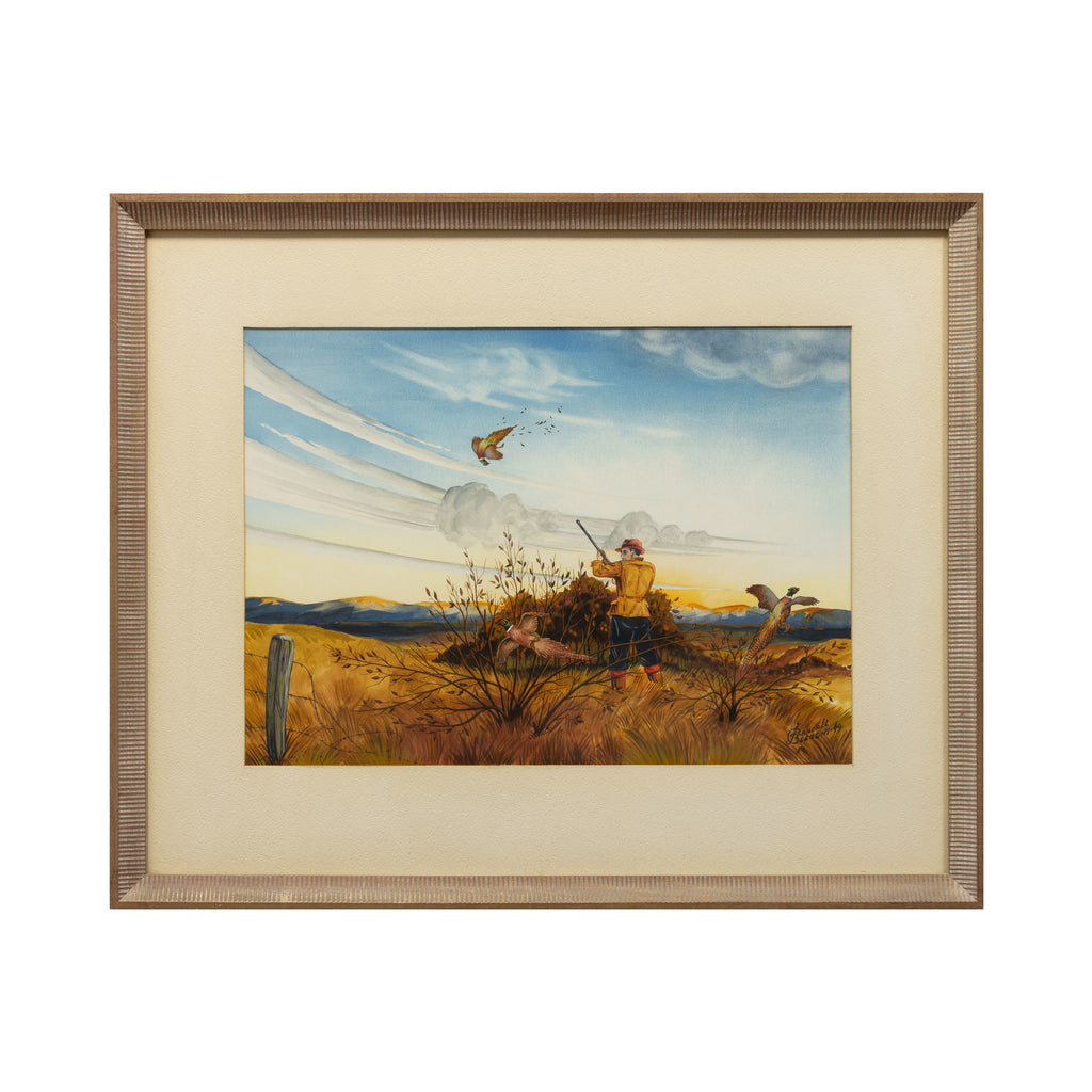 Pair of original watercolors. 13" x 18". Original frame and matting. Dated 1949. Original sporting illustrator. These originals were used for calendars and magazines.