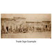 Historic mercantile trade sign of a large oversized double barrel shotgun. This sign was used as a trade stimulator and would hang outside the store to attract customers and act as an advertising sign. Feet shows a wooden stock, trigger, trigger guard and hammers. The barrel shows metal construction and is painted with a bronze finish. The trade sign is massive and is in fair condition with expected wear from use. Dated Circa 1890-1900, measures 85"L x 8 1/2" at the widest. Was told it came from a gun shop in Deadwood, South Dakota.