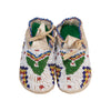 Sioux baby or doll moccasins with beaded edges, parfleche soles, tiny beads with greasy yellows and intricate geometric design. Ex. Blue Bird Family, Rosebud Reservation.